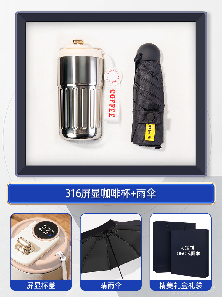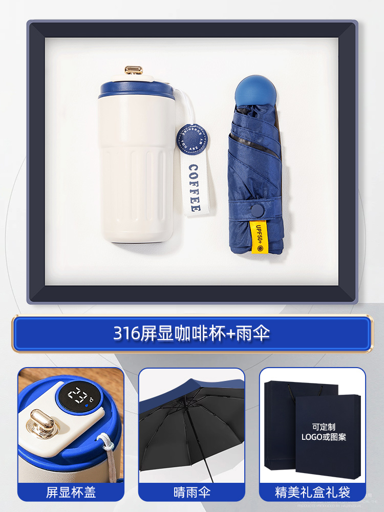 • 316 디지털 커피 컵 인터넷 연예인 우산 2피스 세트 흰색 2D 파란색 상자