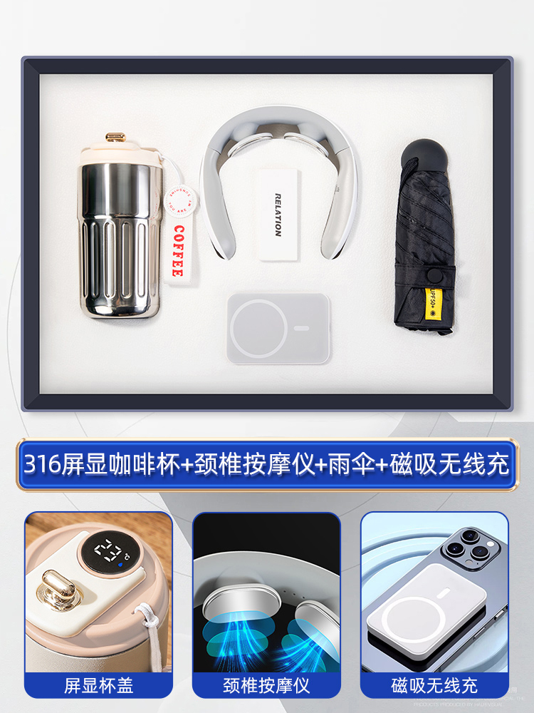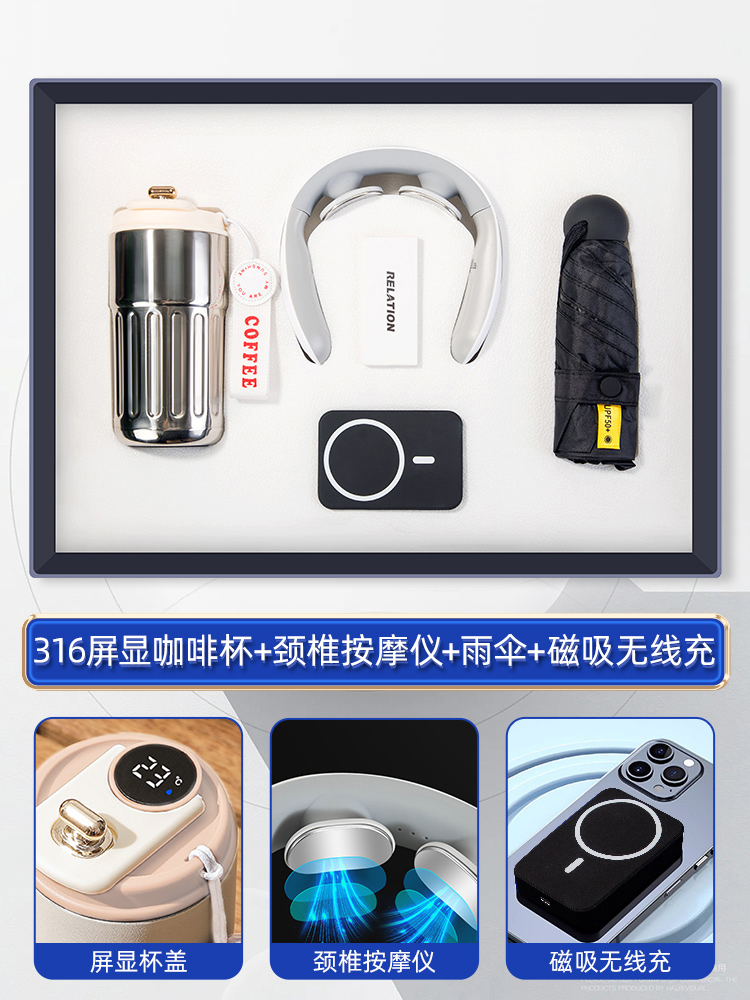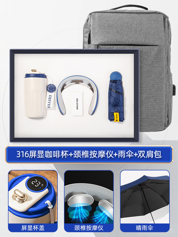 • 316 디지털 디스플레이 커피 컵 경추 악기 인터넷 연예인 우산 자기 보조베터리 배낭 5피스 세트 흰색 6D 파란색 상자
