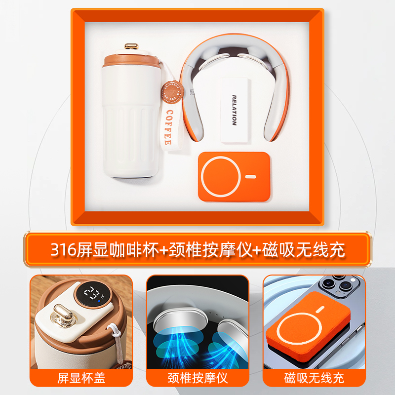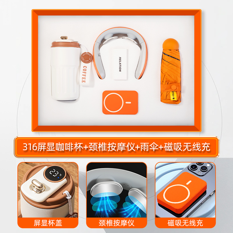 • 316 디지털 커피 컵 F6 음성 경추 악기 인터넷 연예인 우산 자기 보조베터리 4피스 세트 오렌지 6D 오렌지 상자
