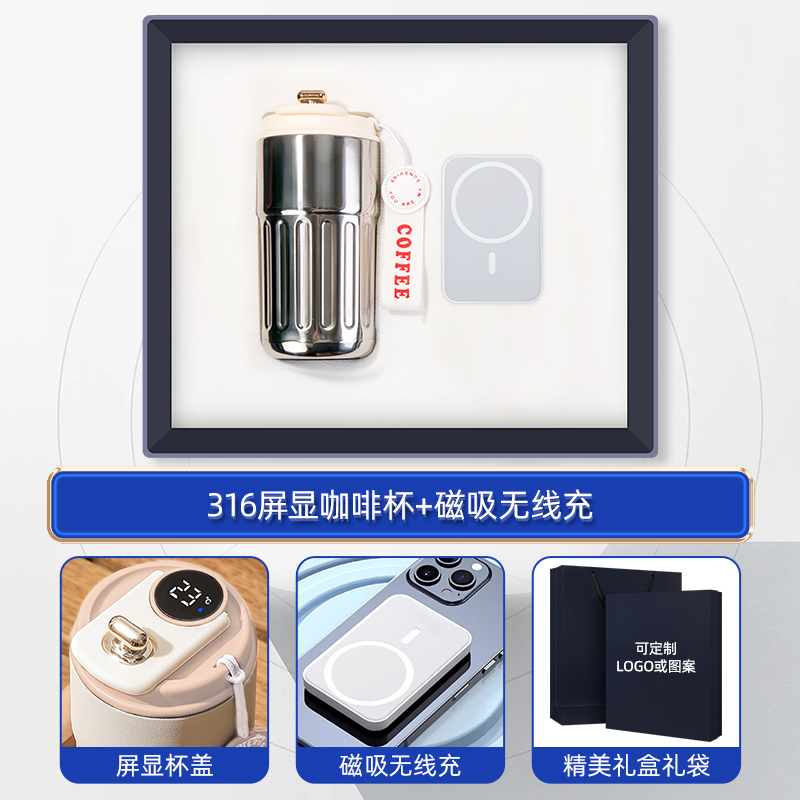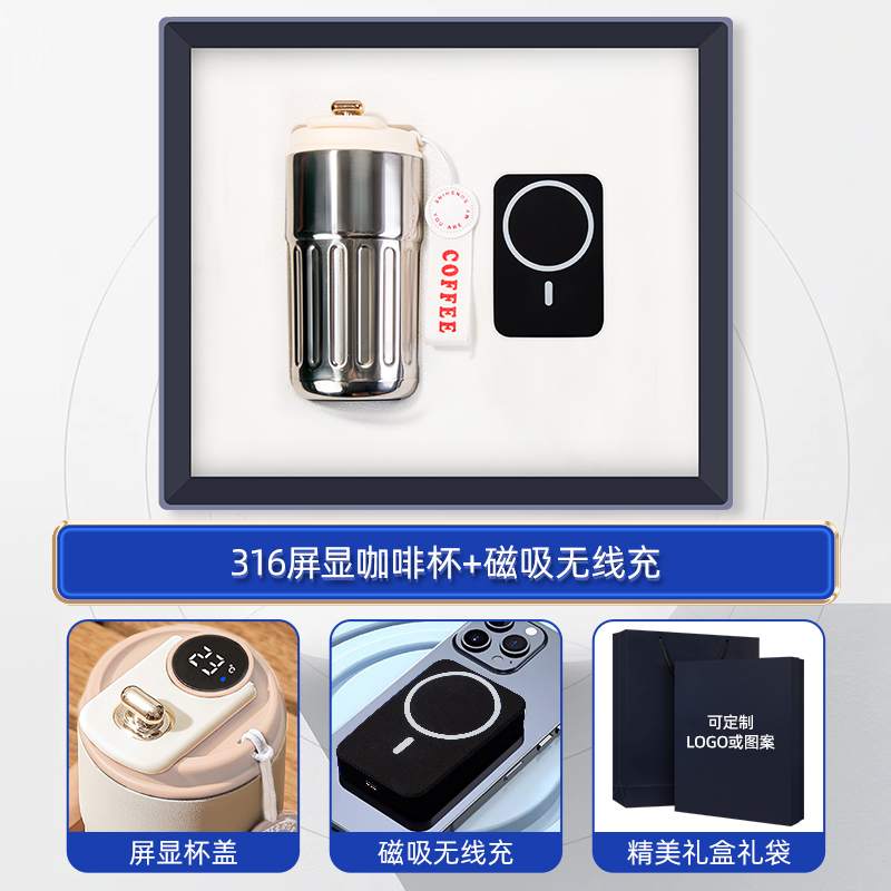 • 316 디지털 커피 컵 자기 보조베터리 2피스 세트 흰색 2D 파란색 상자