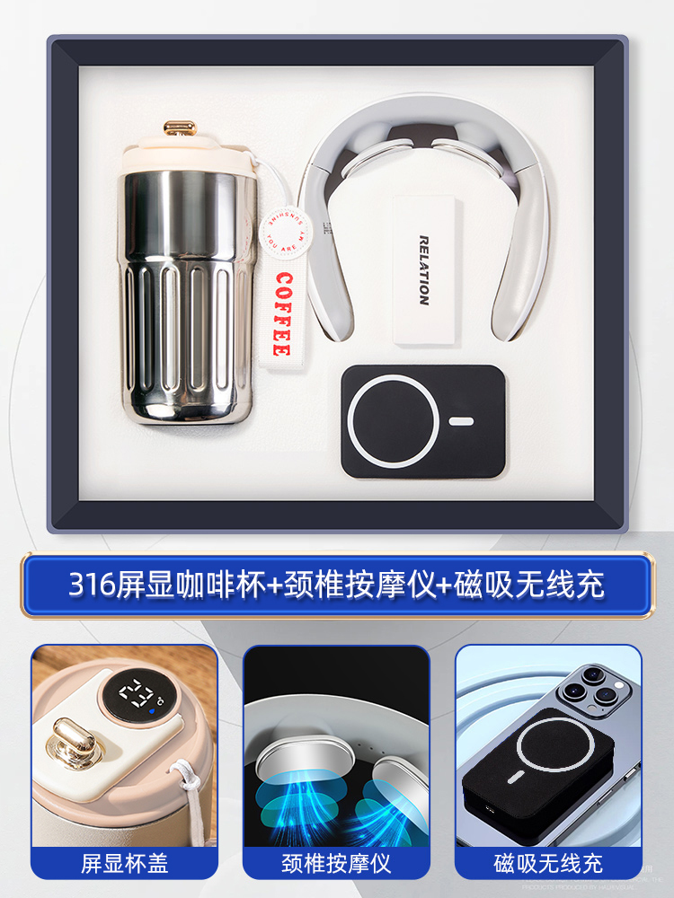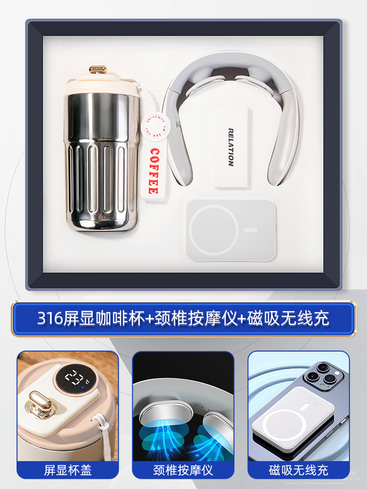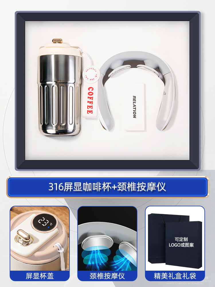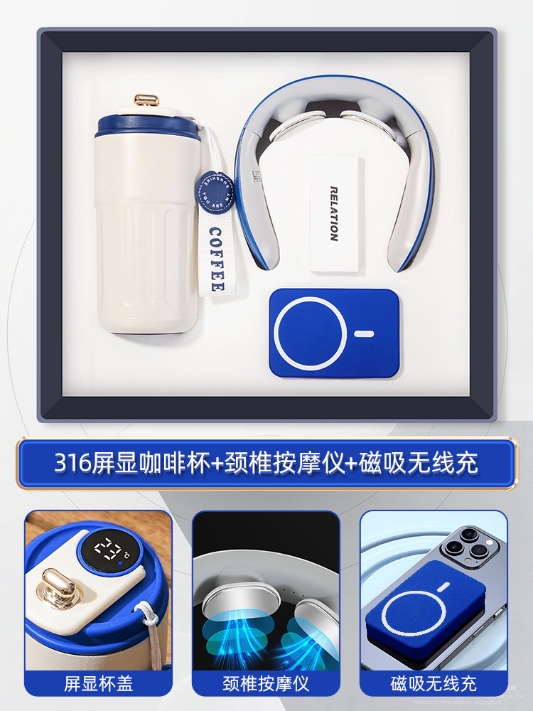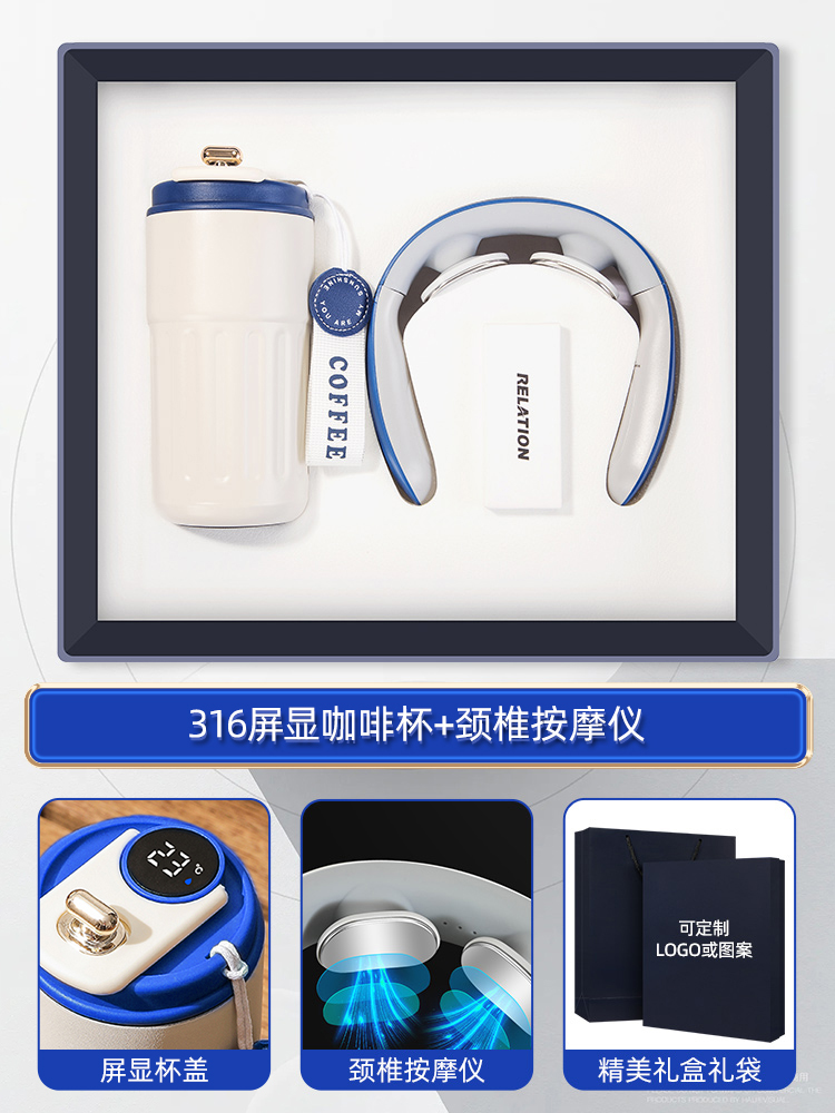 • 316 디지털 커피 컵 F6 음성 경추 악기 2피스 세트 파란색 2D 파란색 상자