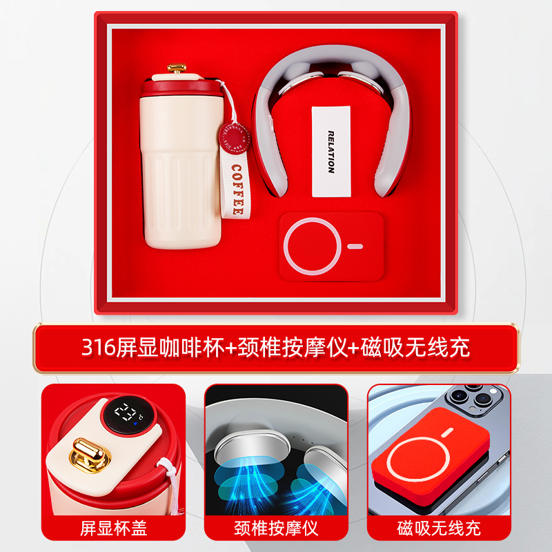 • 316 디지털 커피 컵 F6 음성 경추 악기 자기 보조베터리 3피스 세트 빨간색 2D 빨간색 상자 포함
