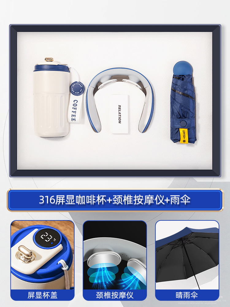 • 316 디지털 커피 컵 F6 음성 경추 악기 인터넷 연예인 우산 3 종 세트 흰색 6D 파란색 상자