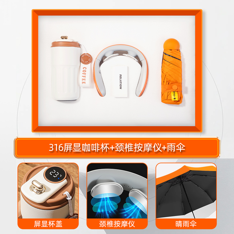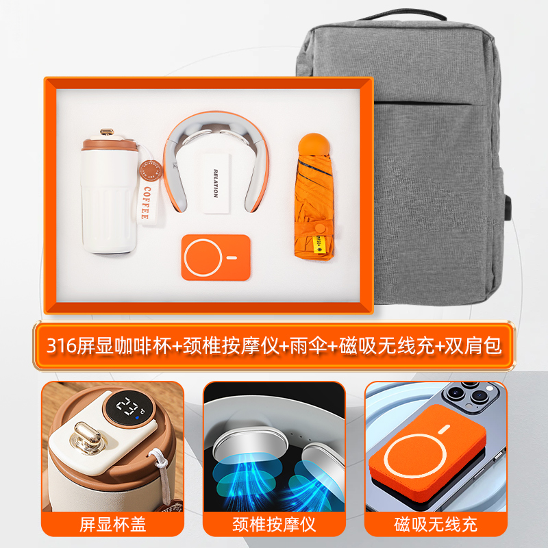 • 316 디지털 디스플레이 커피 컵 경추 악기 인터넷 연예인 우산 자기 보조베터리 배낭 5피스 세트 오렌지 6D 오렌지 상자
