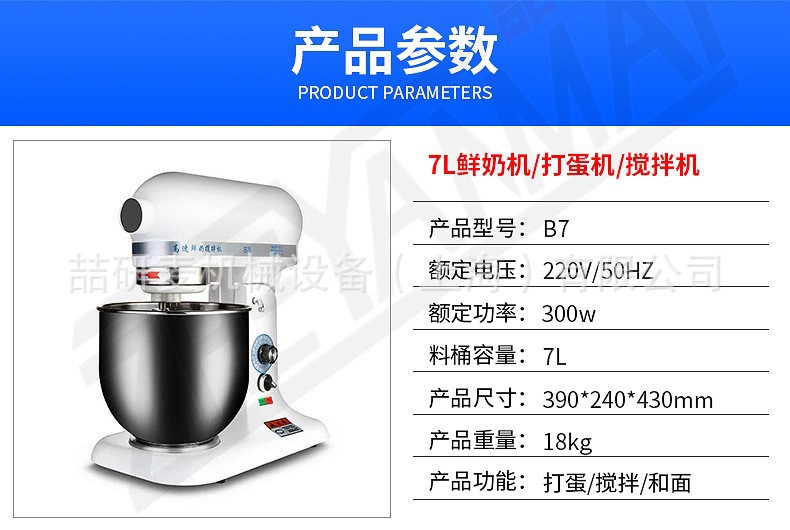 다기능 믹서 상업용 밀가루 식품 계란 비터 B7 리터 수직 혼합 가정용 반죽 믹서 무단 속도 조절
