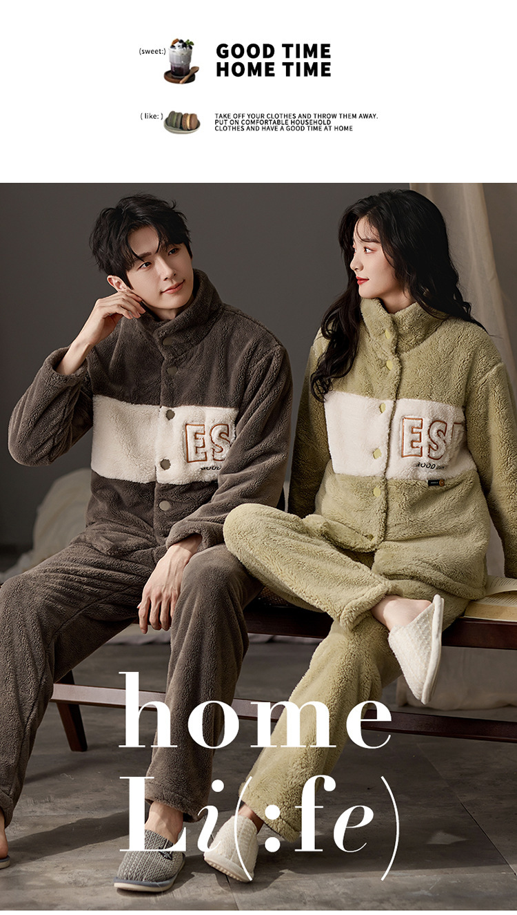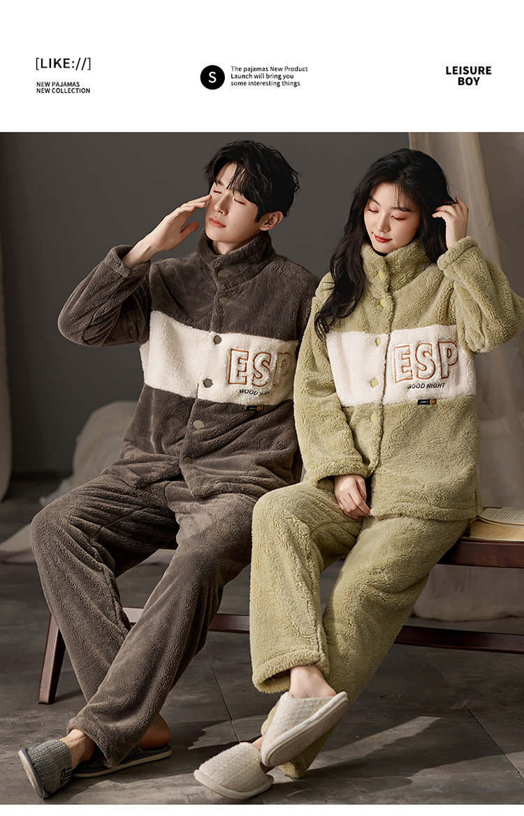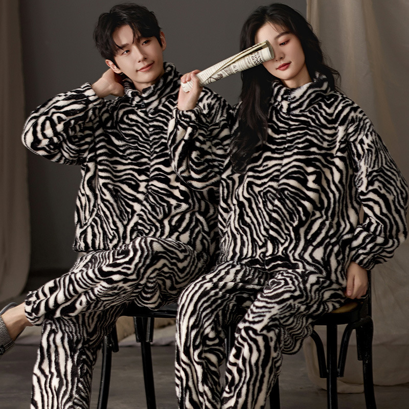 2024 가을과 겨울 잠옷 눈송이 벨벳 따뜻한 두꺼운 남성과 여성의 편안한 레저 커플은 집 밖에서 옷을 입습니다.스토어 가기
