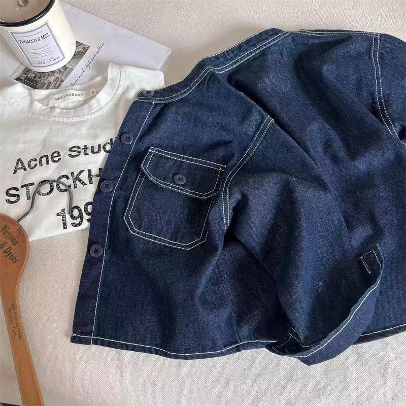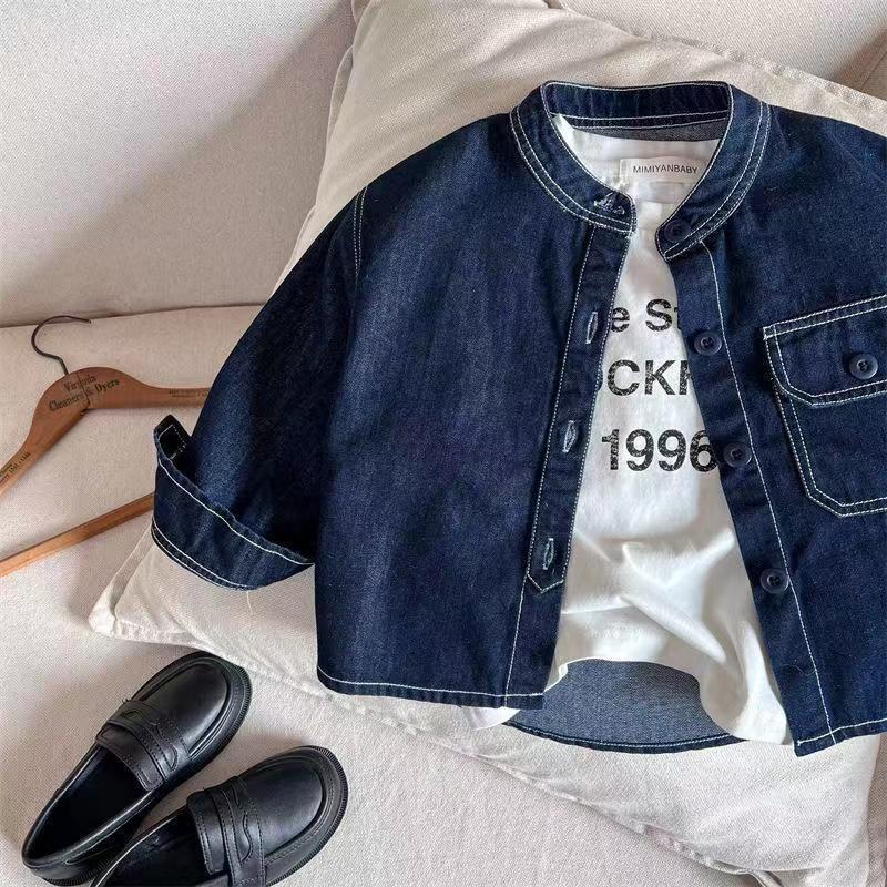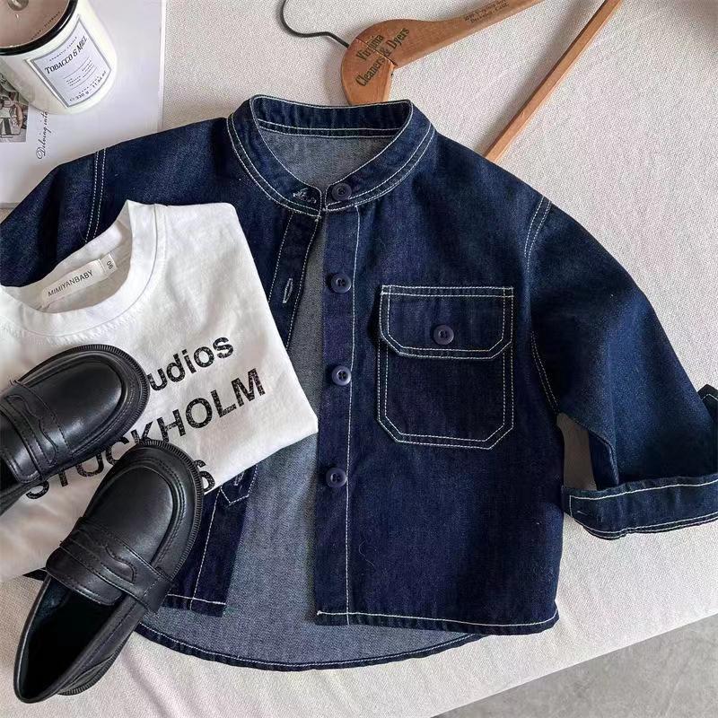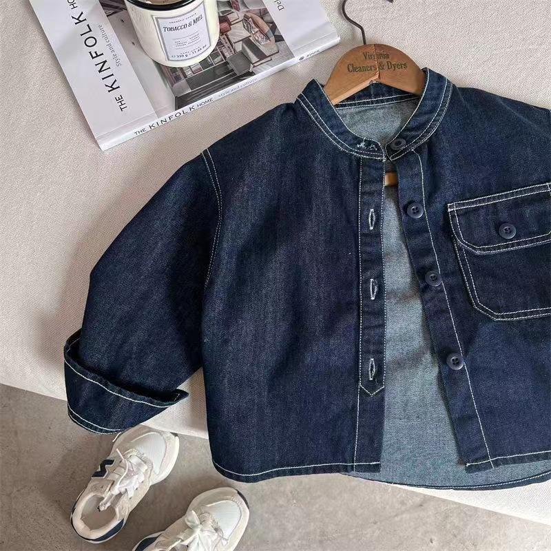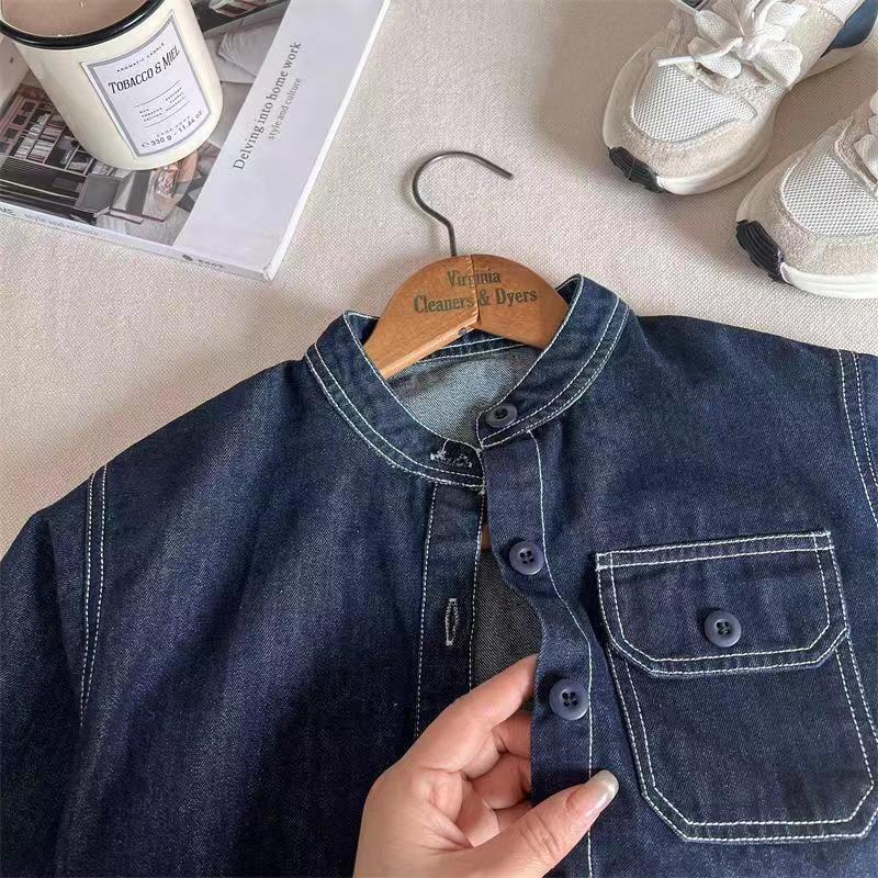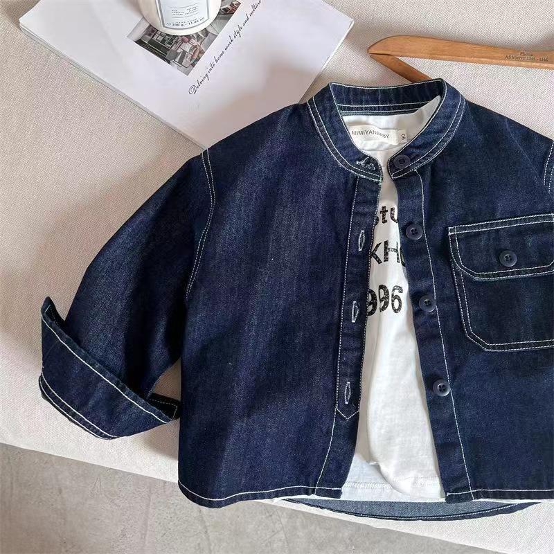 봄 2024 새로운 한국 스타일 어린이 데님 셔츠 느슨한 캐주얼 소년 베이비 탑 재킷 패션 트렌드스토어 가기