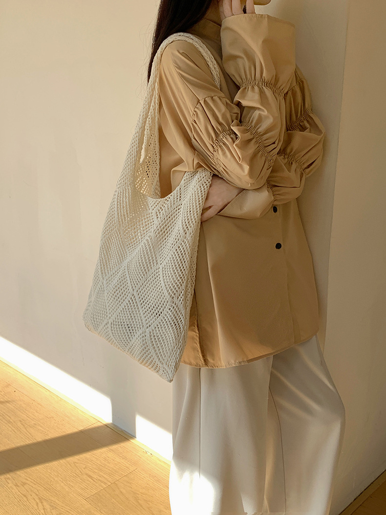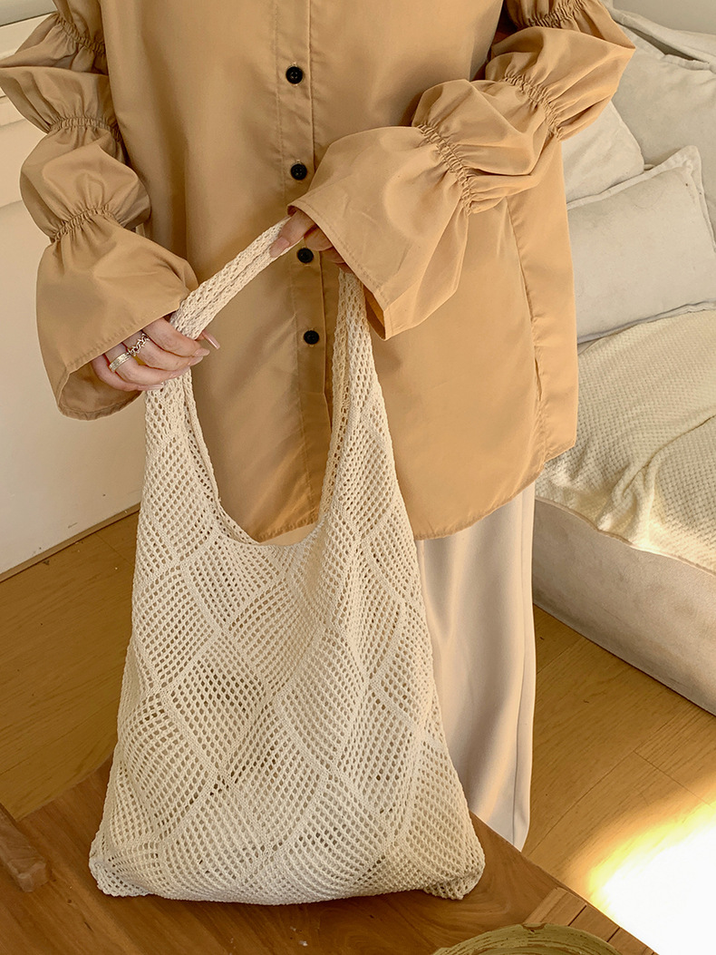 2025 신상품 크로스보더 가방 일본 및 한국 토트백 단색 가방 니트 가방 빈티지 가방 여성용 가방 트렌디스토어 가기