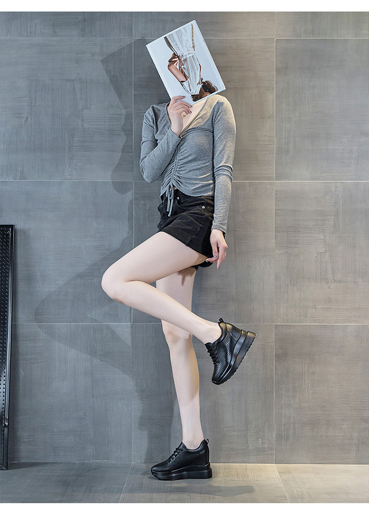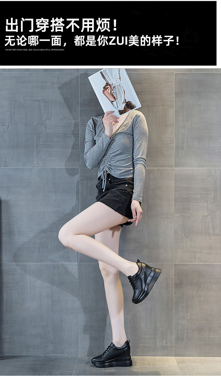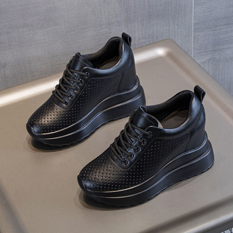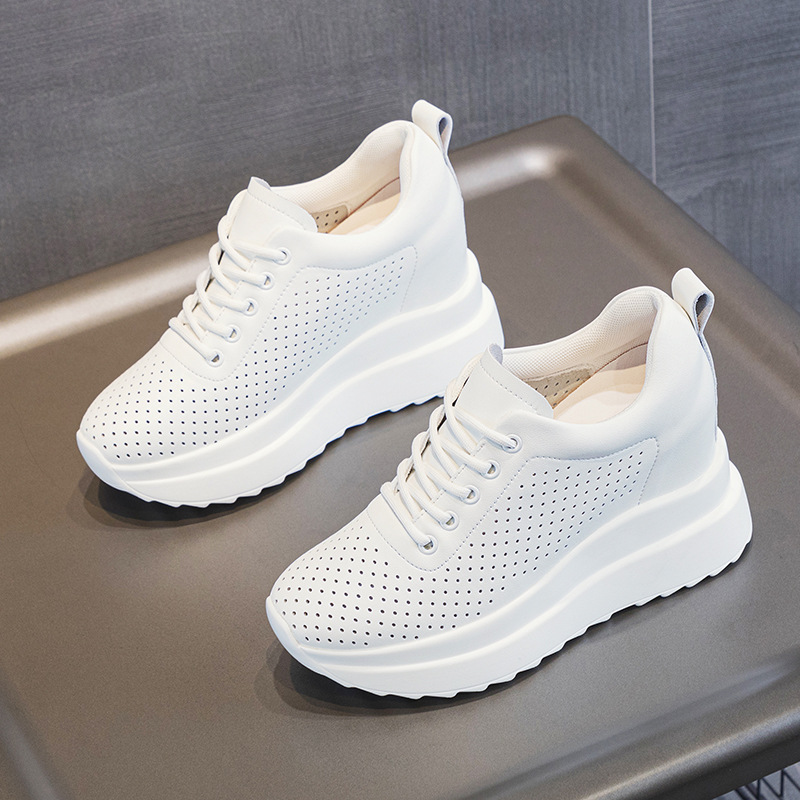 트렌디한 일요일 2025 여름 여성 신발 새로운 스타일의 홀 샌들 도매 두꺼운 밑창 플랫폼 내부 높이 증가 캐주얼 신발스토어 가기