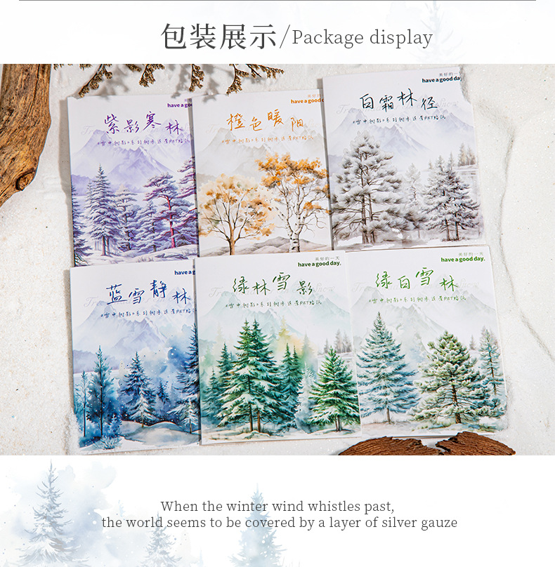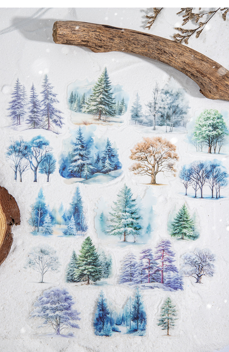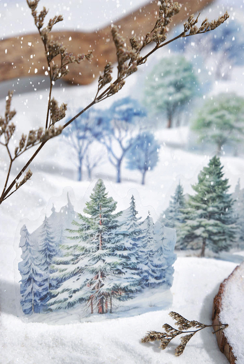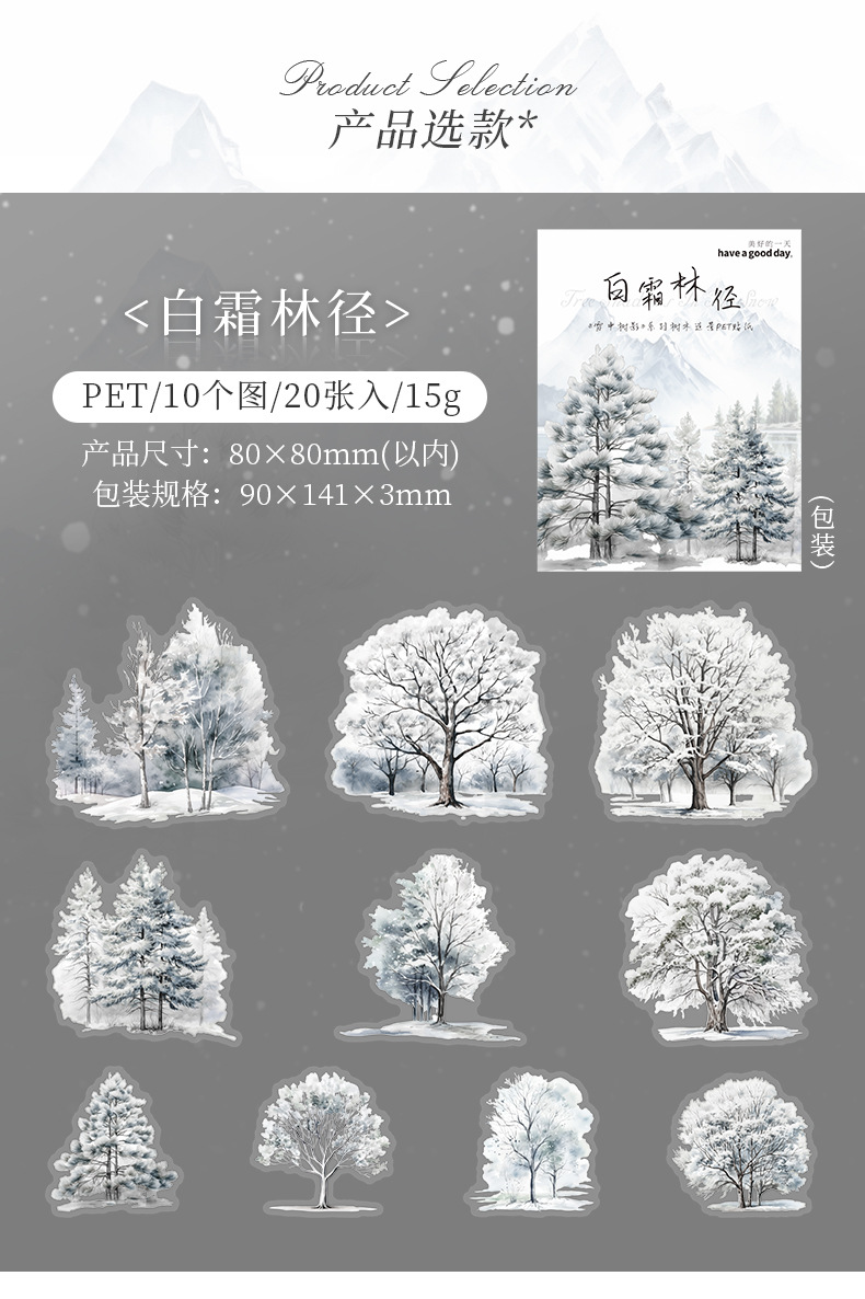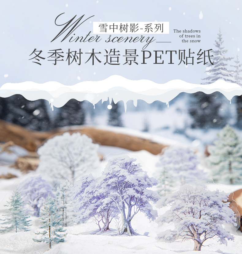 아름다운 날 겨울 나무 풍경 애완 동물 테마 스티커 스노우 트리 그림자 시리즈 6 20 선택