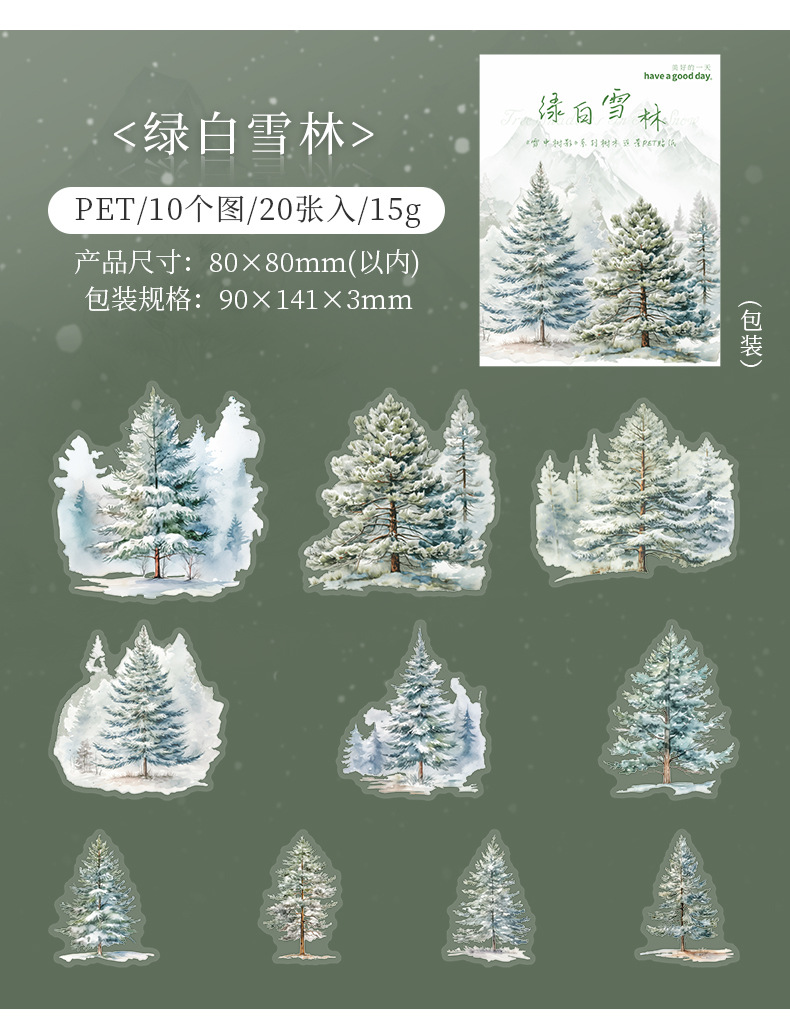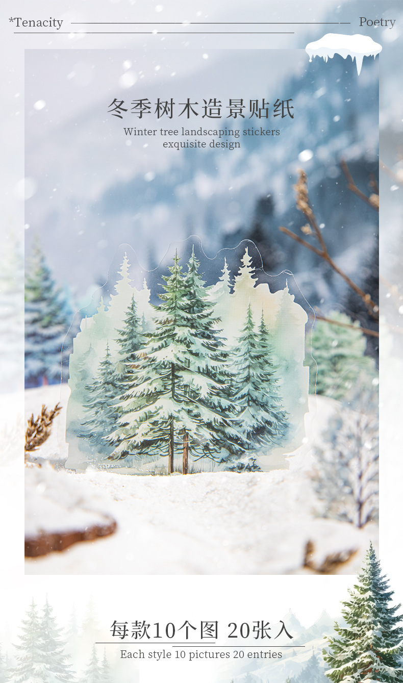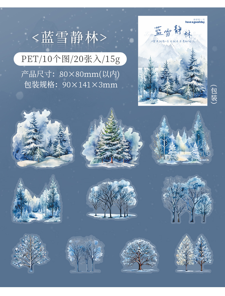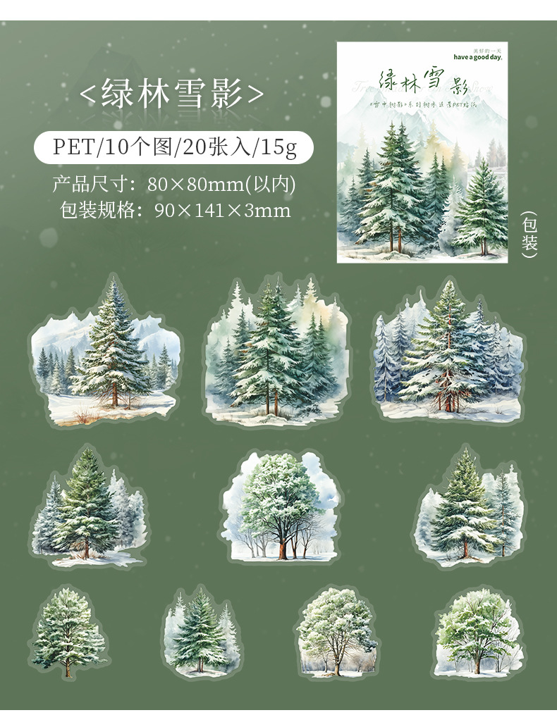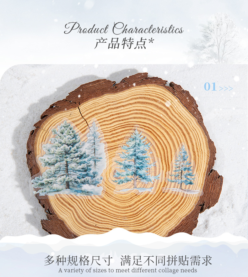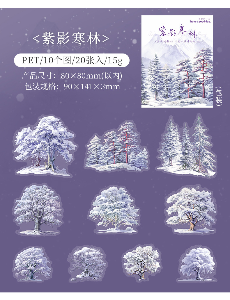 아름다운 날 겨울 나무 풍경 애완 동물 테마 스티커 스노우 트리 그림자 시리즈 6 20 선택
