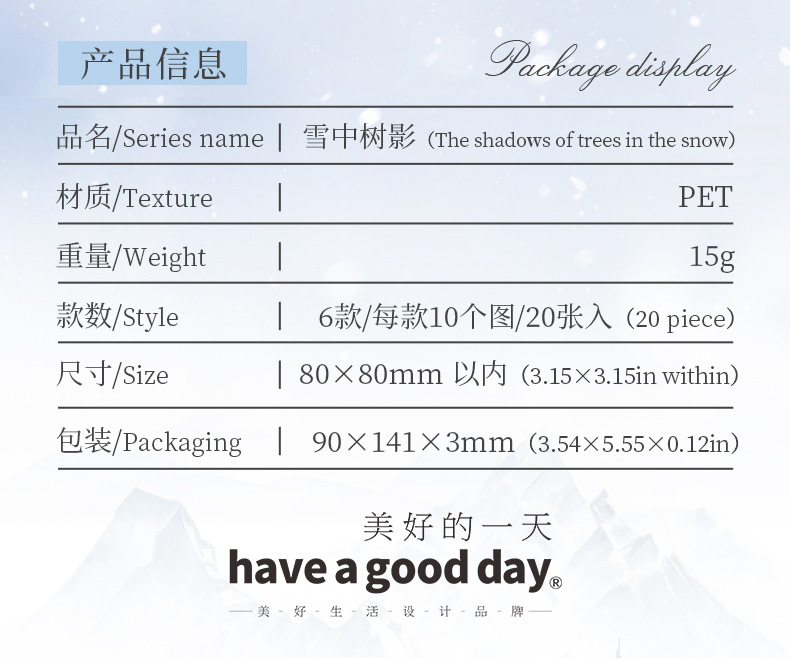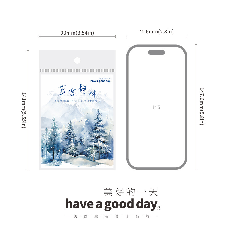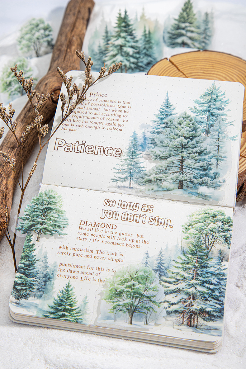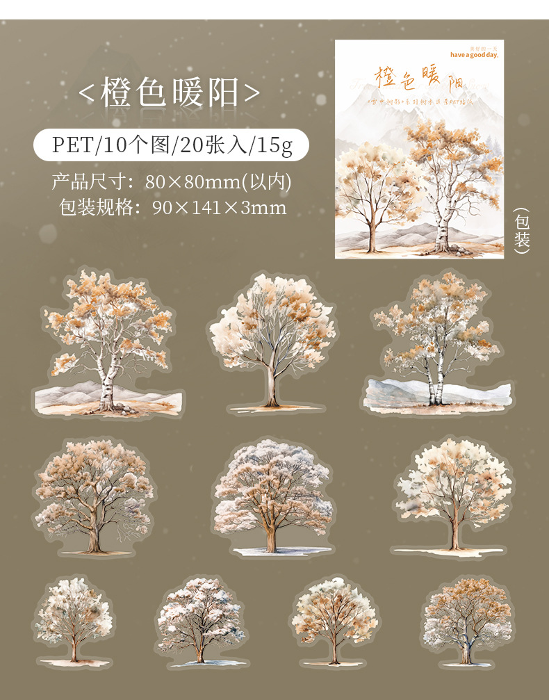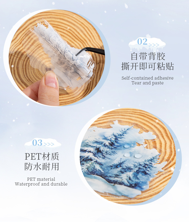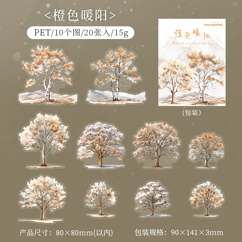 아름다운 날 겨울 나무 풍경 애완 동물 테마 스티커 스노우 트리 그림자 시리즈 6 20 선택
