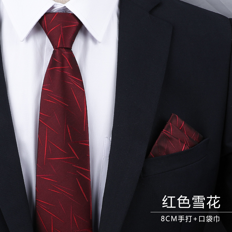 • 8CM 빨간색 눈송이 핸드 타이 + 포켓 스퀘어