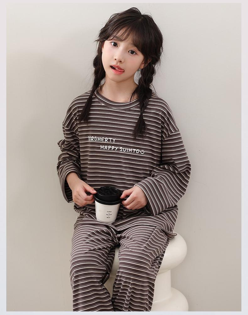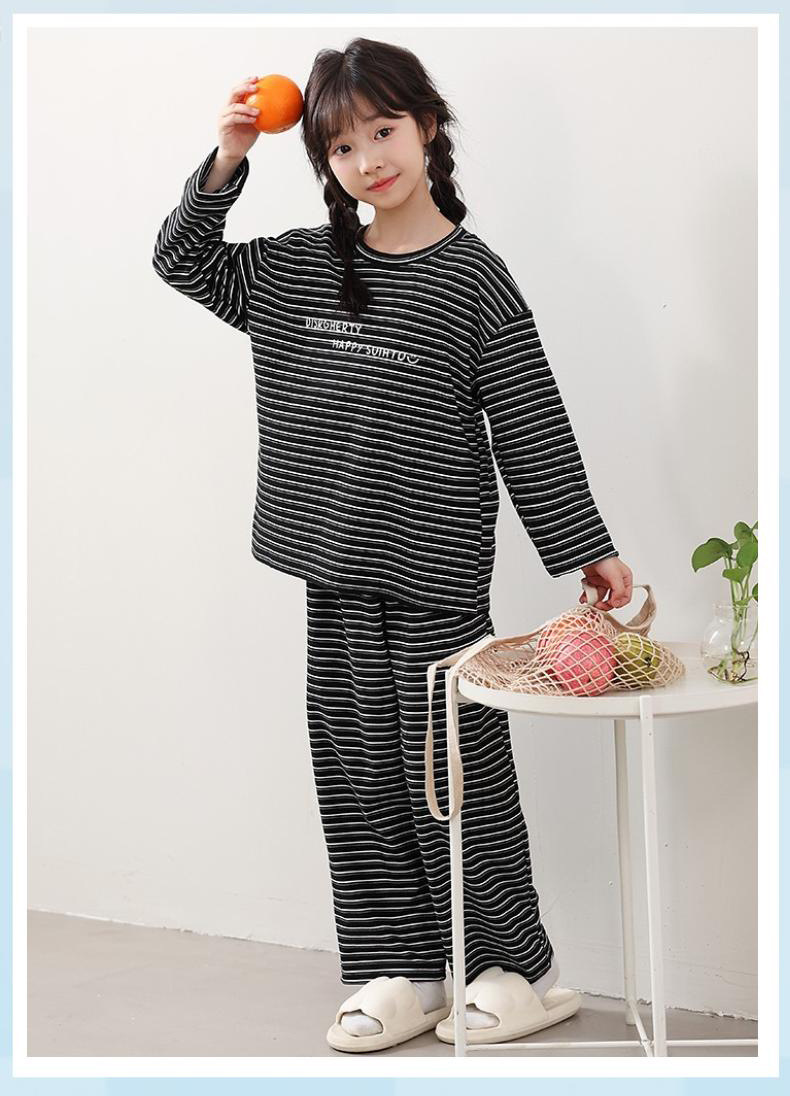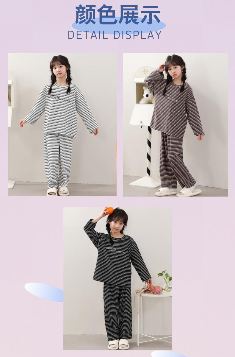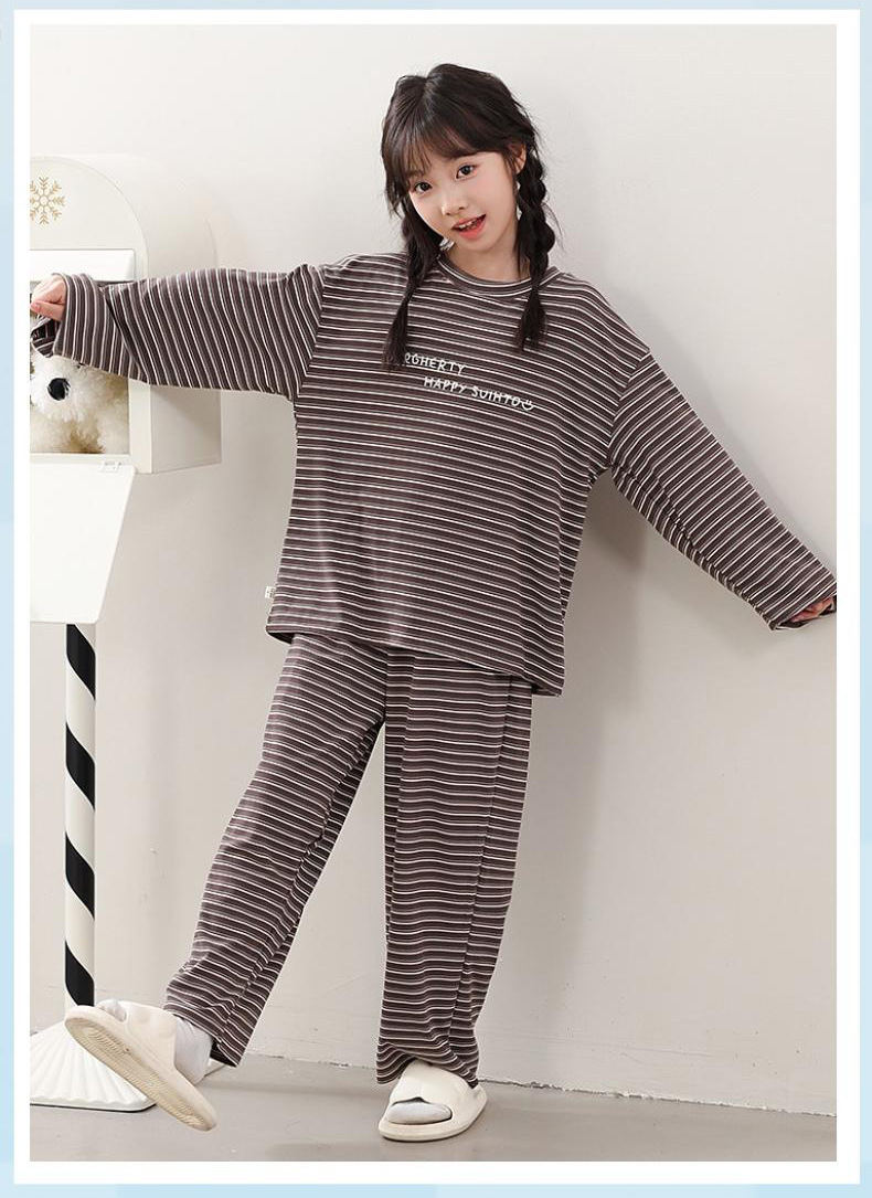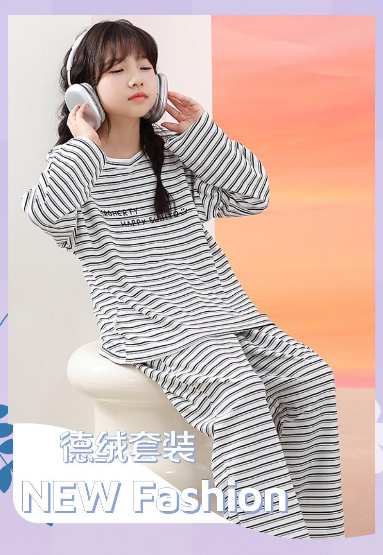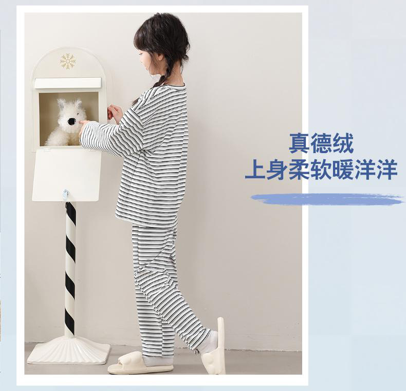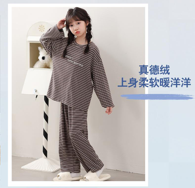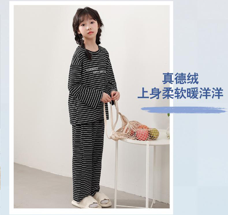 가을과 겨울 세트 소년의 두꺼운 따뜻한 벨벳 잠옷 2024 새로운 중대형 어린이 캐주얼 스트라이프 홈 의류스토어 가기