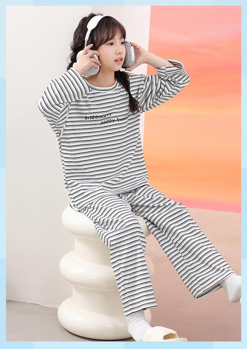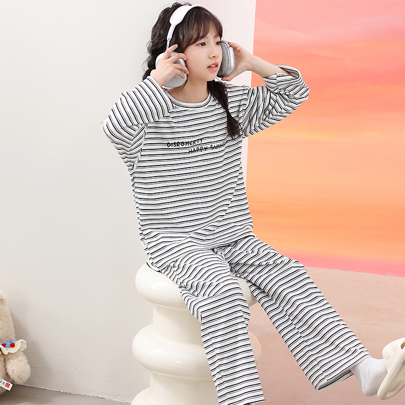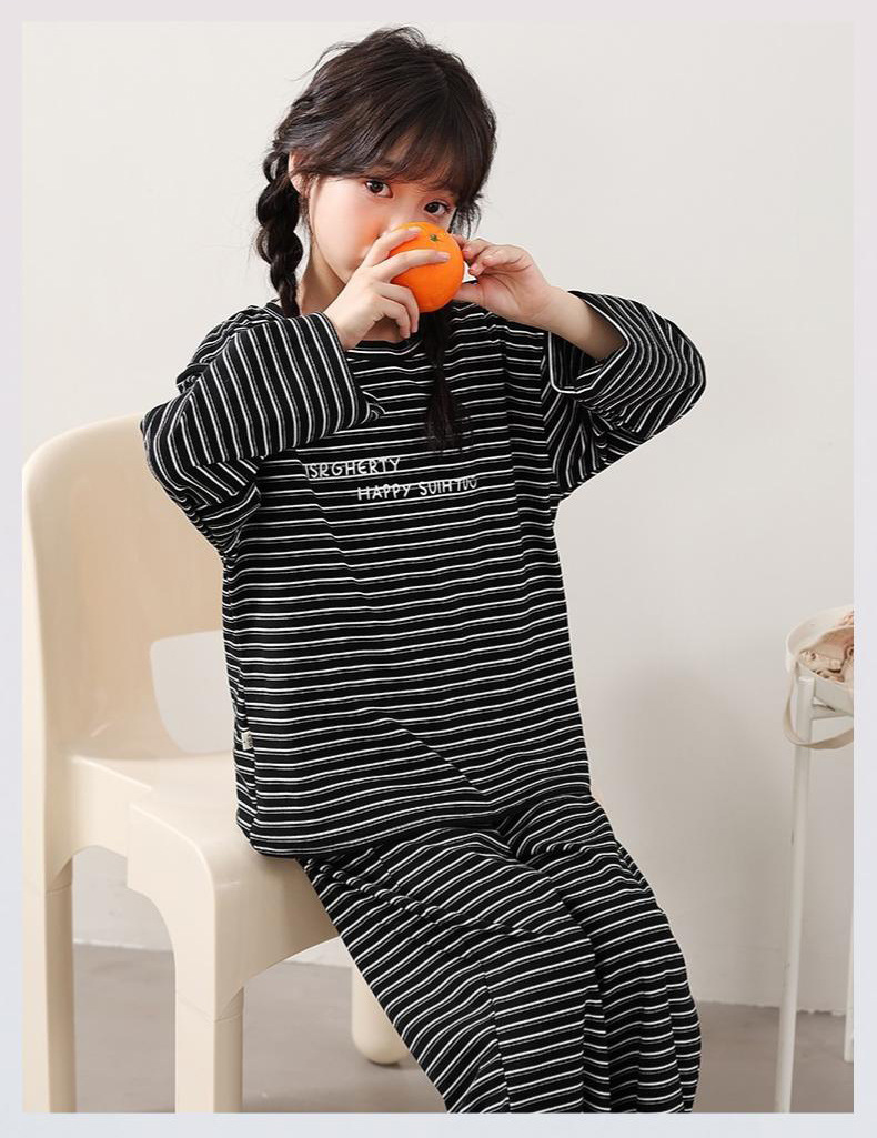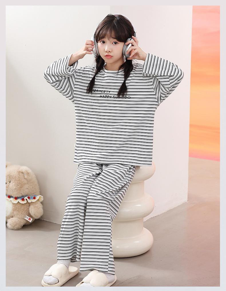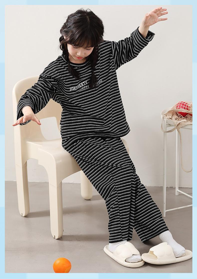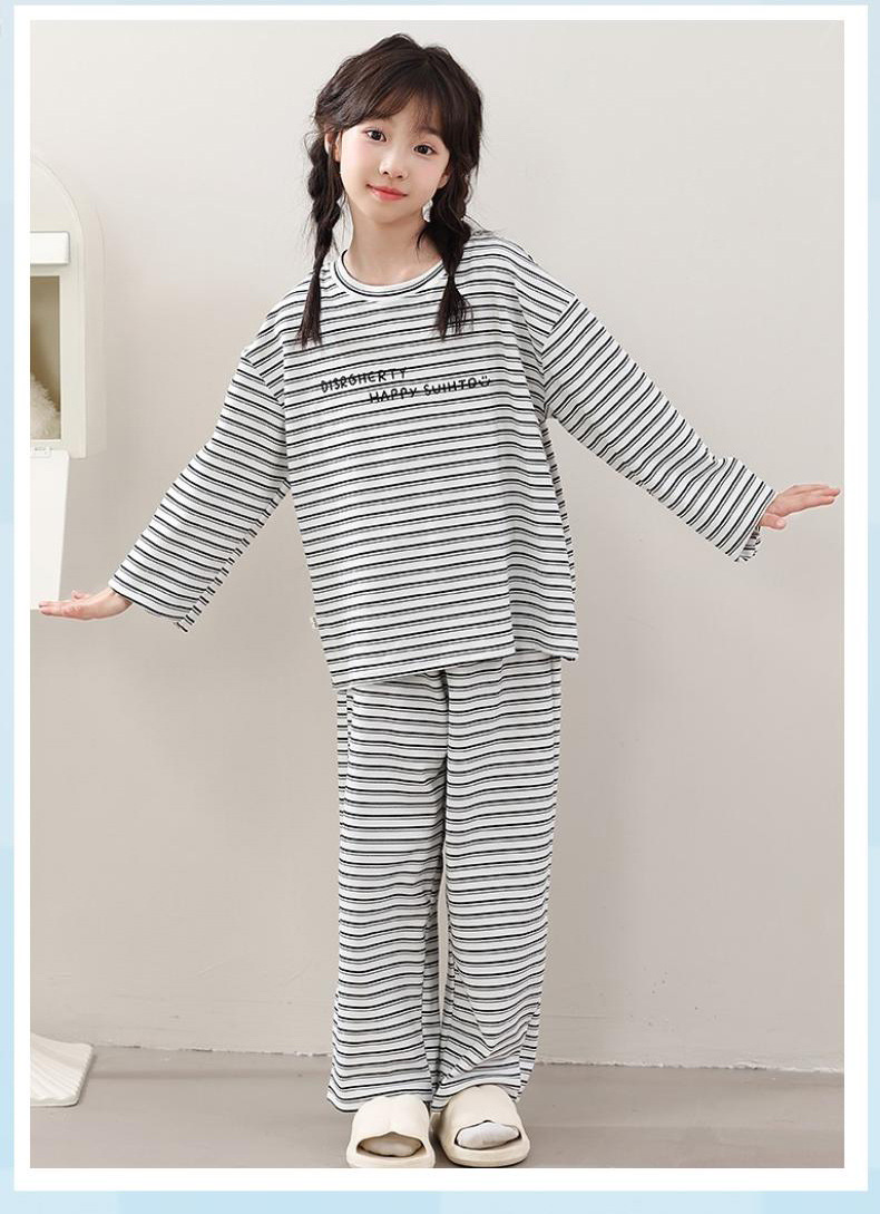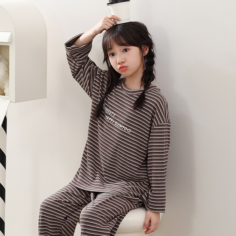 가을과 겨울 세트 소년의 두꺼운 따뜻한 벨벳 잠옷 2024 새로운 중대형 어린이 캐주얼 스트라이프 홈 의류스토어 가기