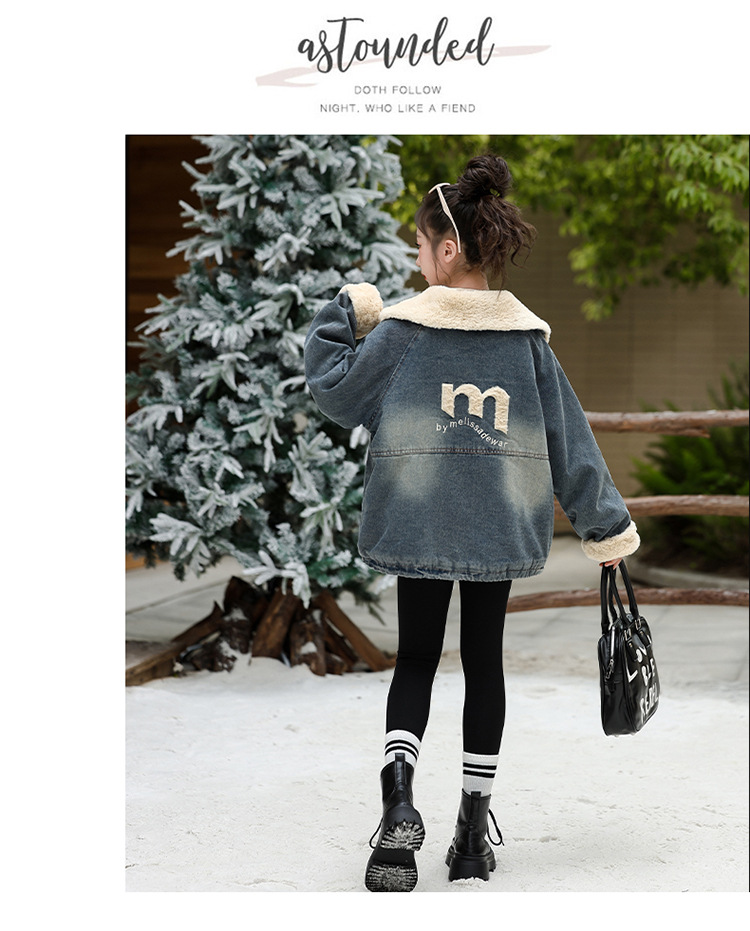 소녀들의 하이 퀄리티 중공업 데님 코트 가을과 겨울 기모 데님 파커 2024 청바지 코트