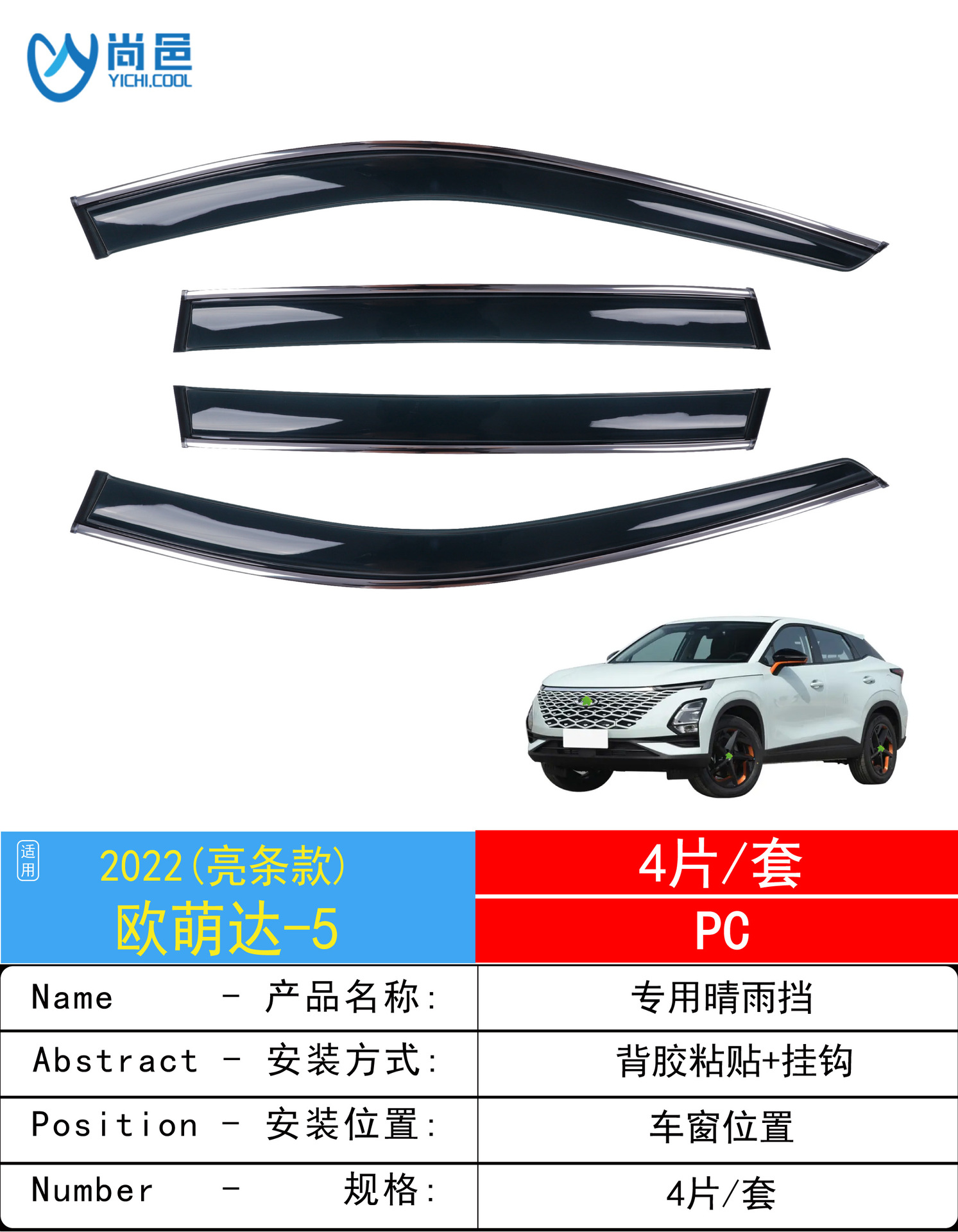 국경 간 적용 2022 새로운 Chery Omoda OMODA5 창 비 방패 PC 확장 자동차 비 방패스토어 가기