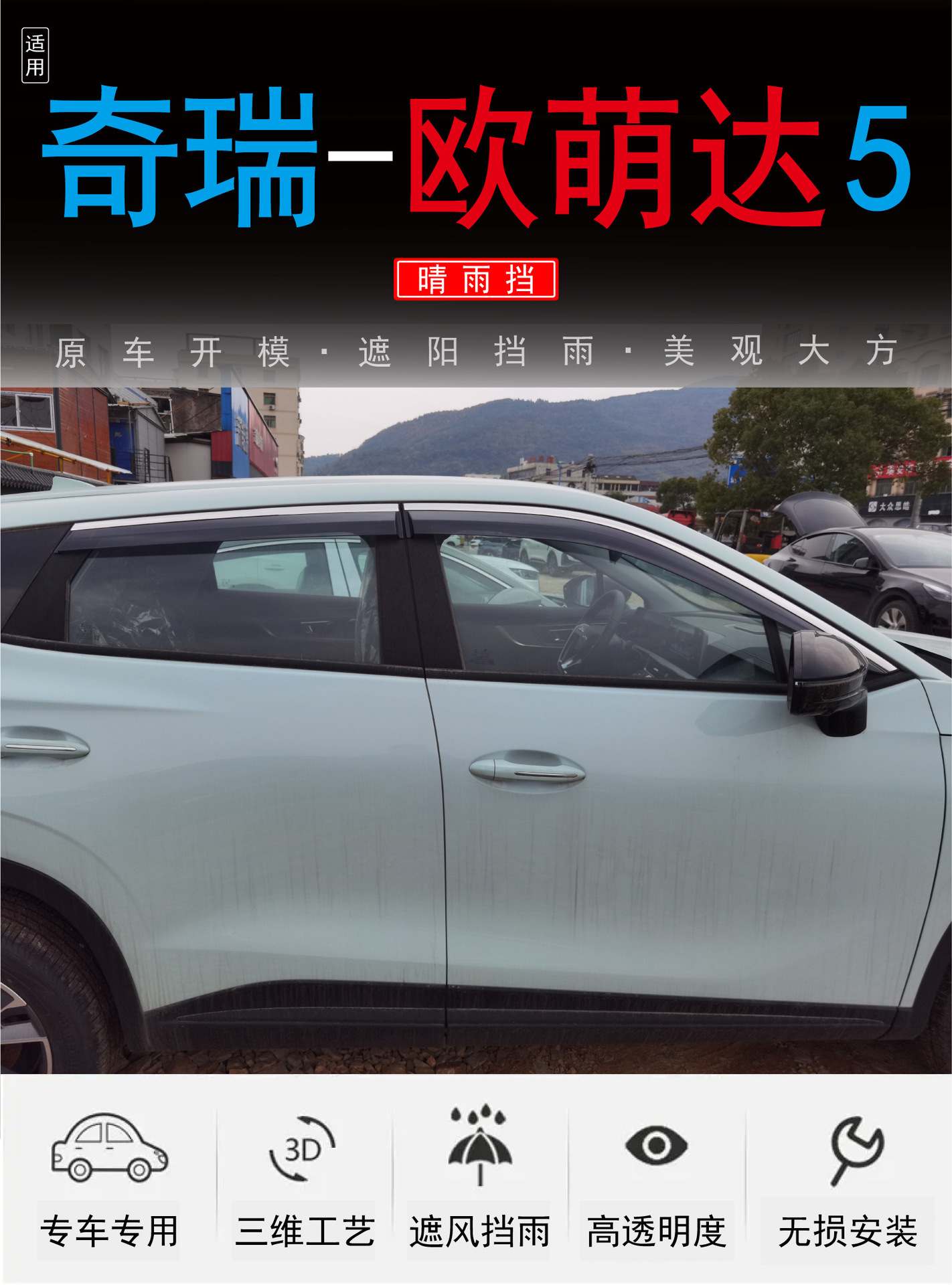 국경 간 적용 2022 새로운 Chery Omoda OMODA5 창 비 방패 PC 확장 자동차 비 방패