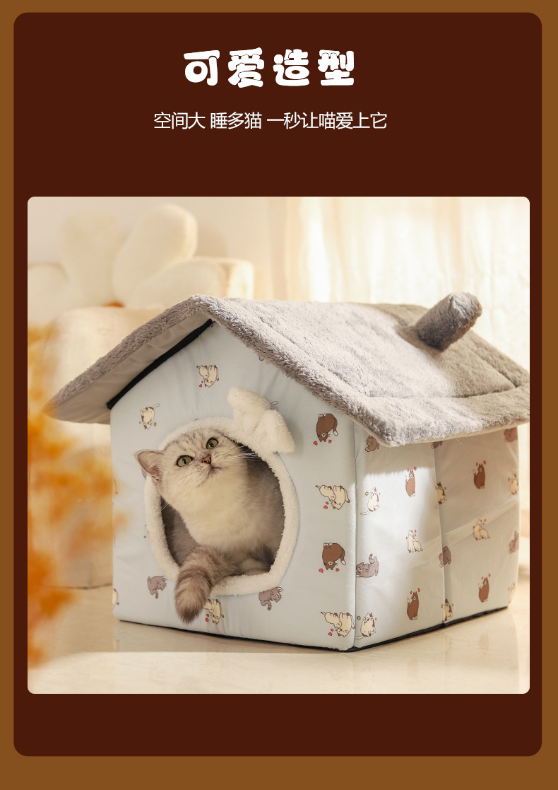 고양이 둥지 겨울 따뜻한 폐쇄 사계절 유니버설 이동식 및 세척 가능한 고양이 잠자는 집 강아지 Kennel 애완 동물 용품스토어 가기