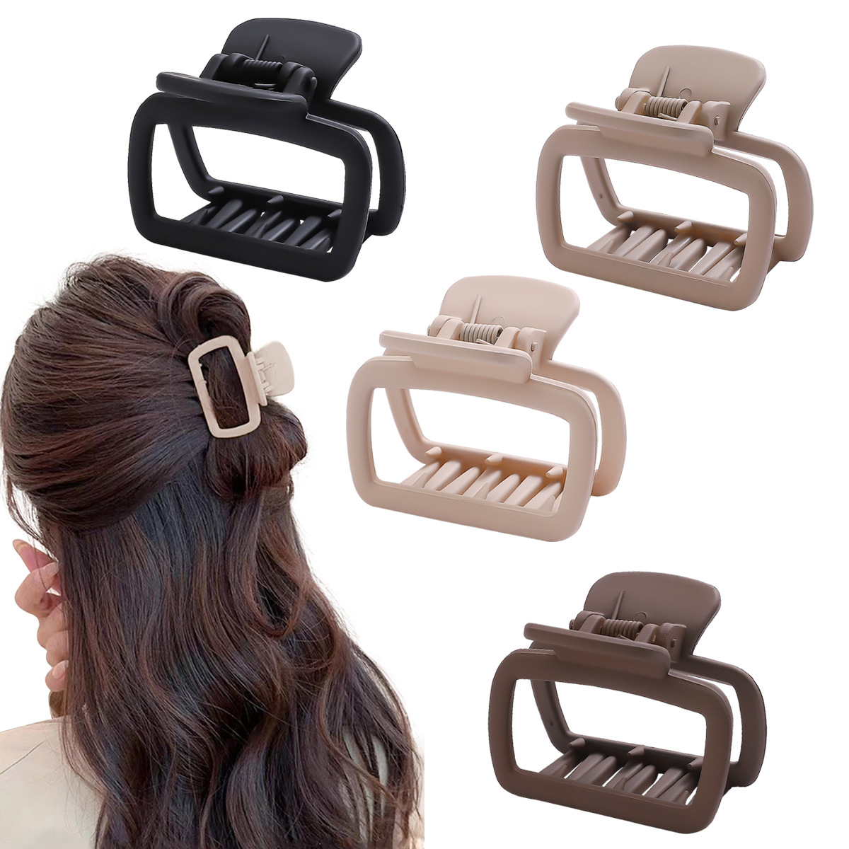 국경 작은 사각형 잡아 클립 Maillard 컬러 가을과 겨울 상어 클립 머리핀 헤어 액세서리 높은 포니 테일 패션 머리핀 도매스토어 가기
