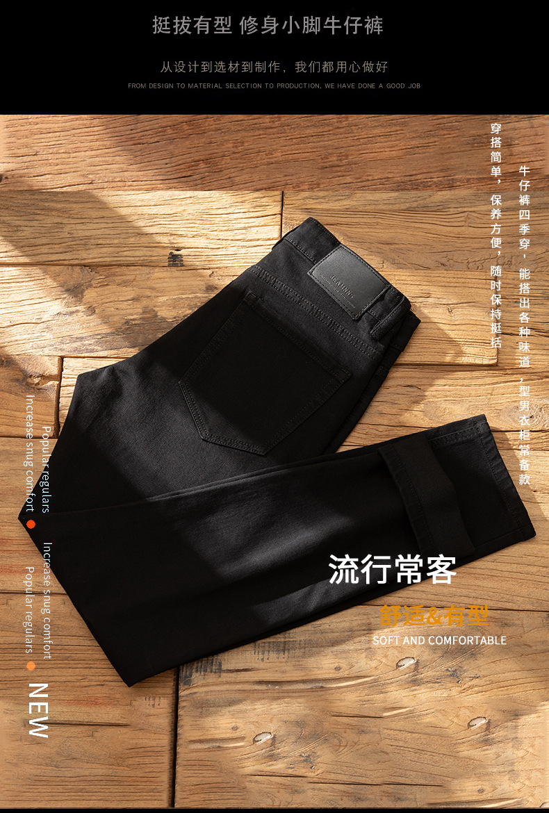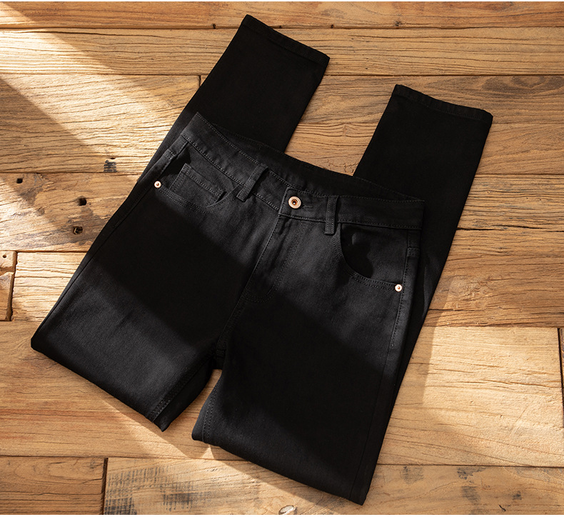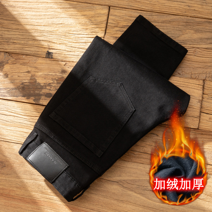 홍콩 기모 두꺼운 청바지 남자 겨울 따뜻한 슬림 핏 작은 발 하이 엔드 블랙 캐주얼 올 매치 가을 및 겨울 바지
