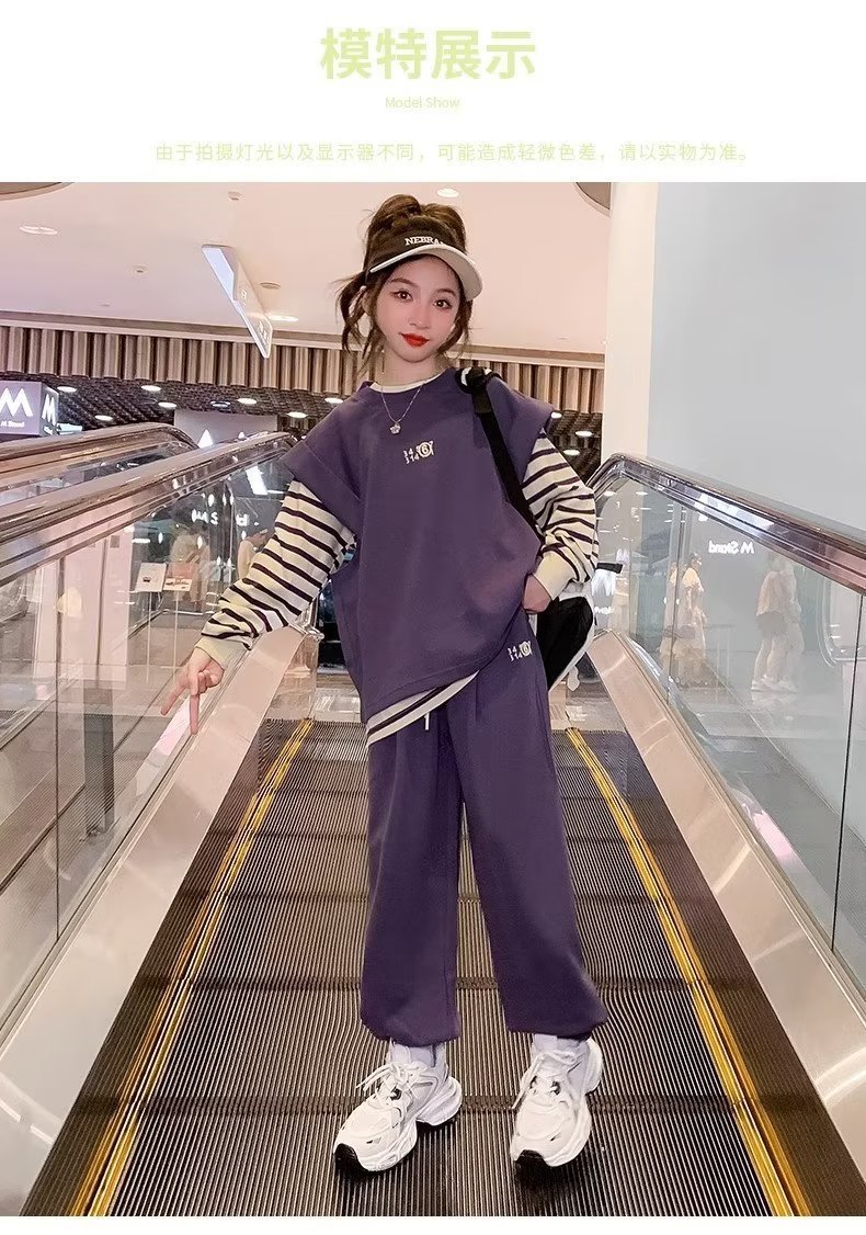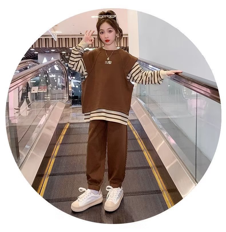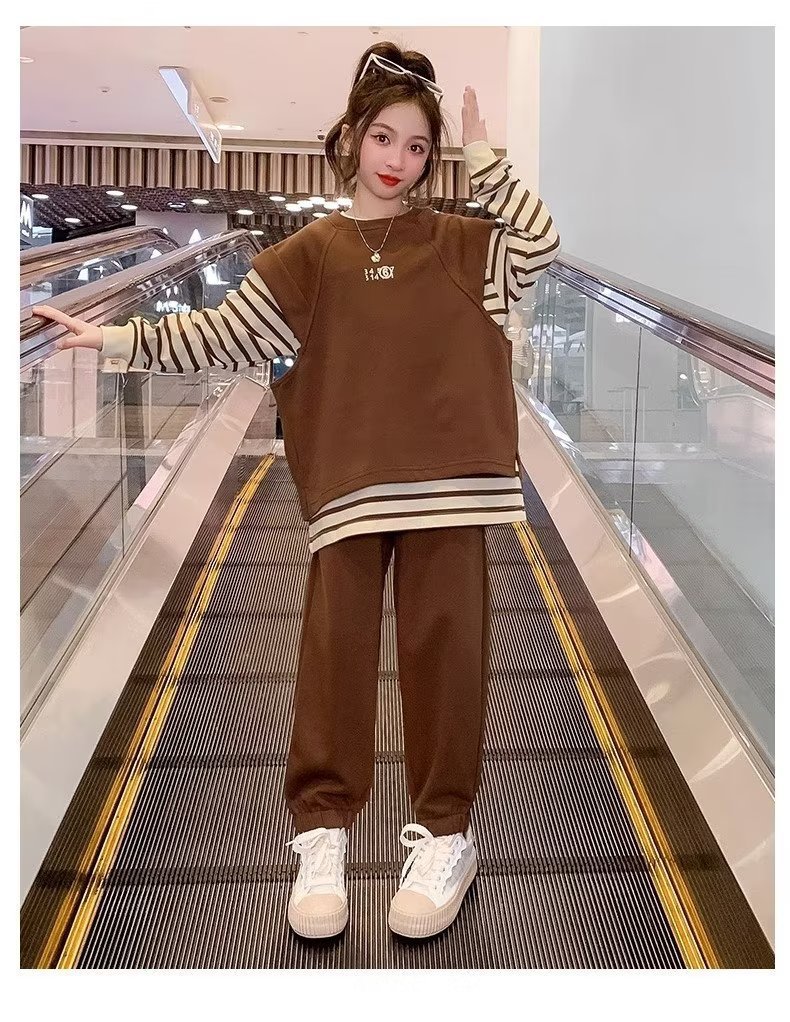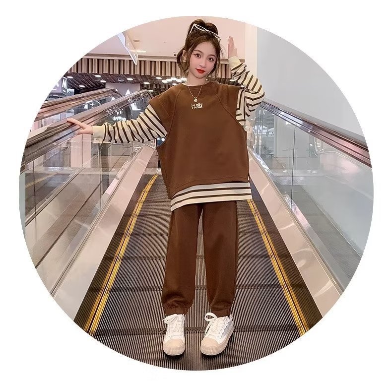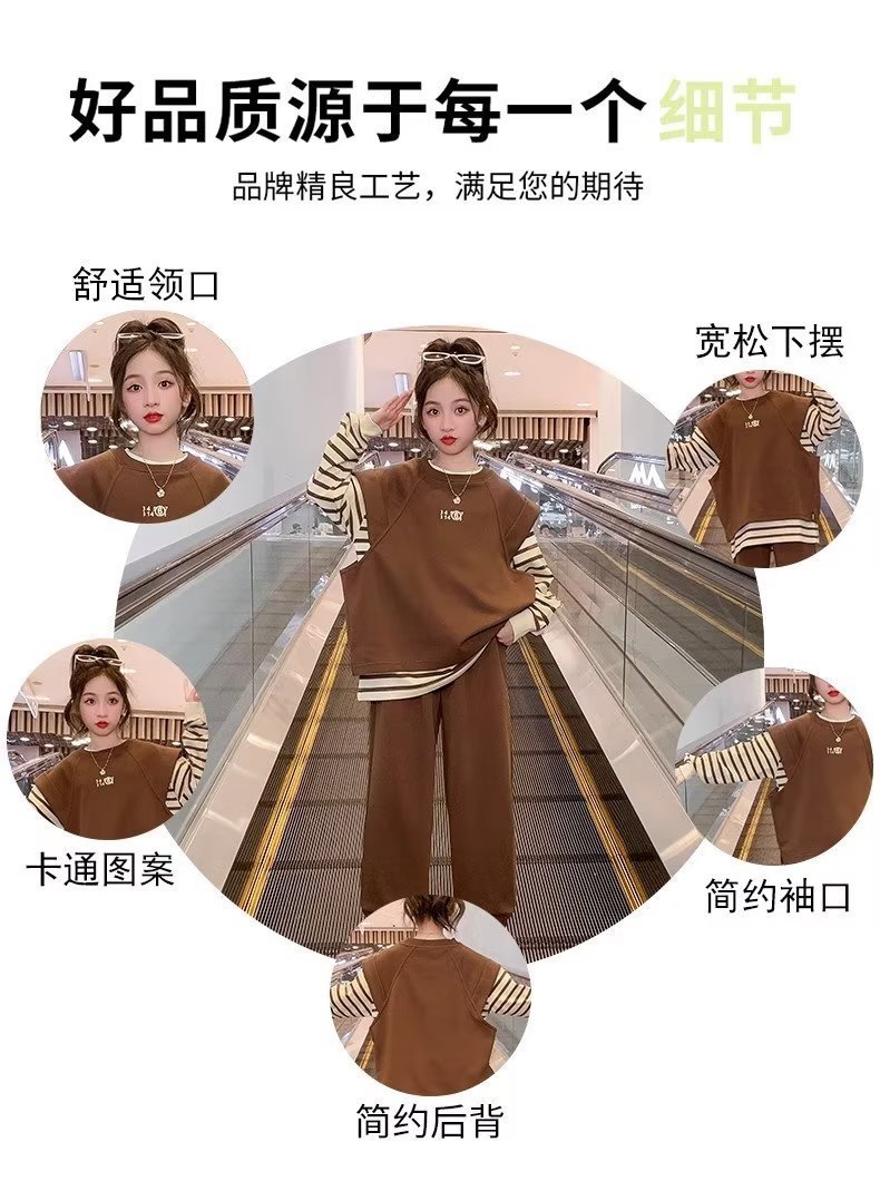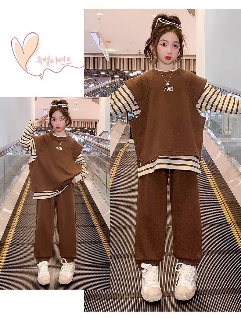 [복합 실버 여우 벨벳] 소녀 플러스 벨벳 세트 2024 겨울 새 소녀 서양식 가을과 겨울 두꺼운 스웨터