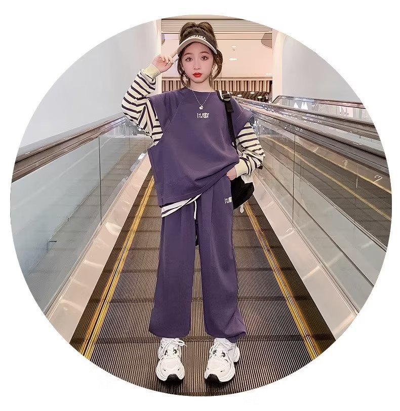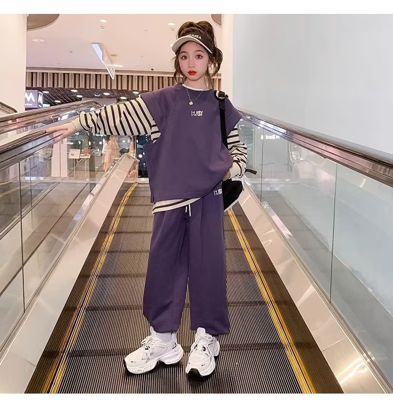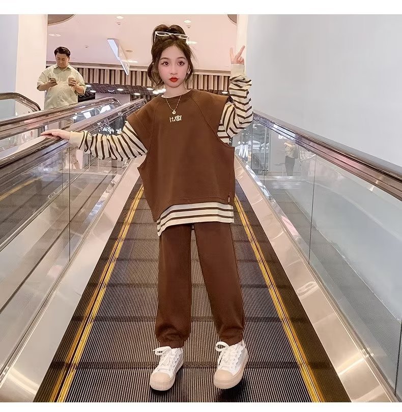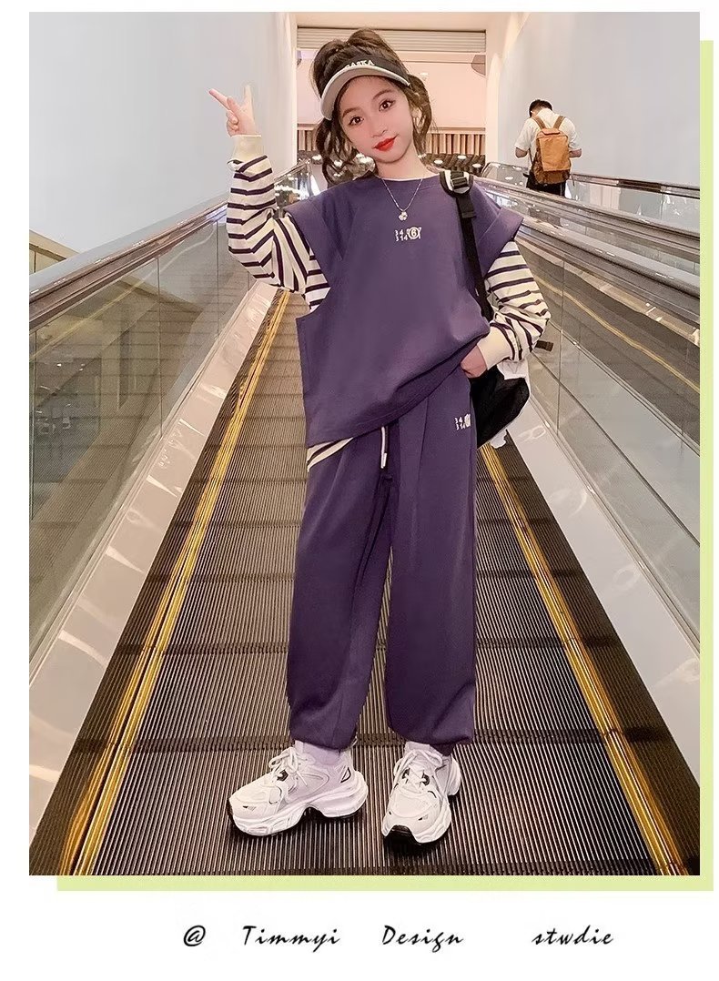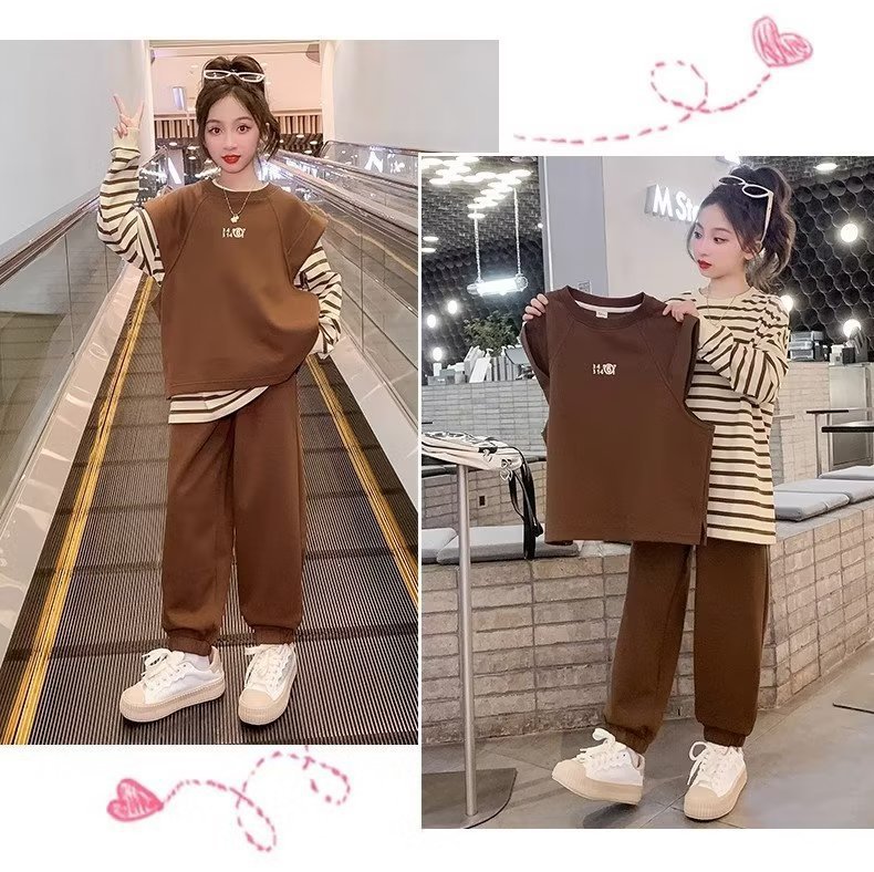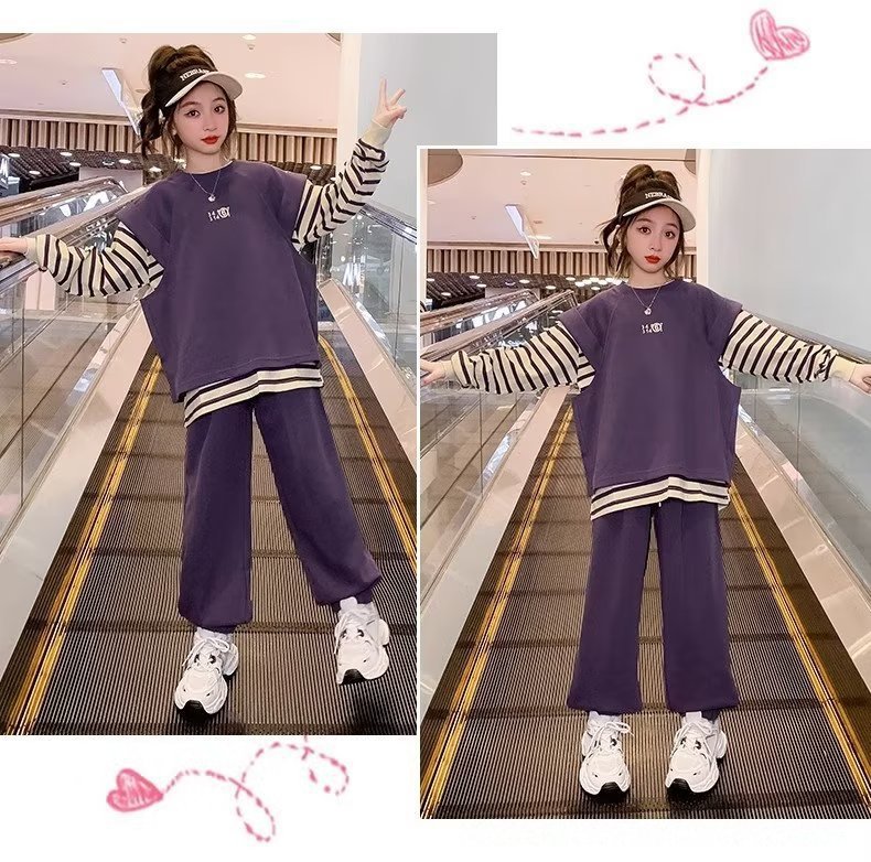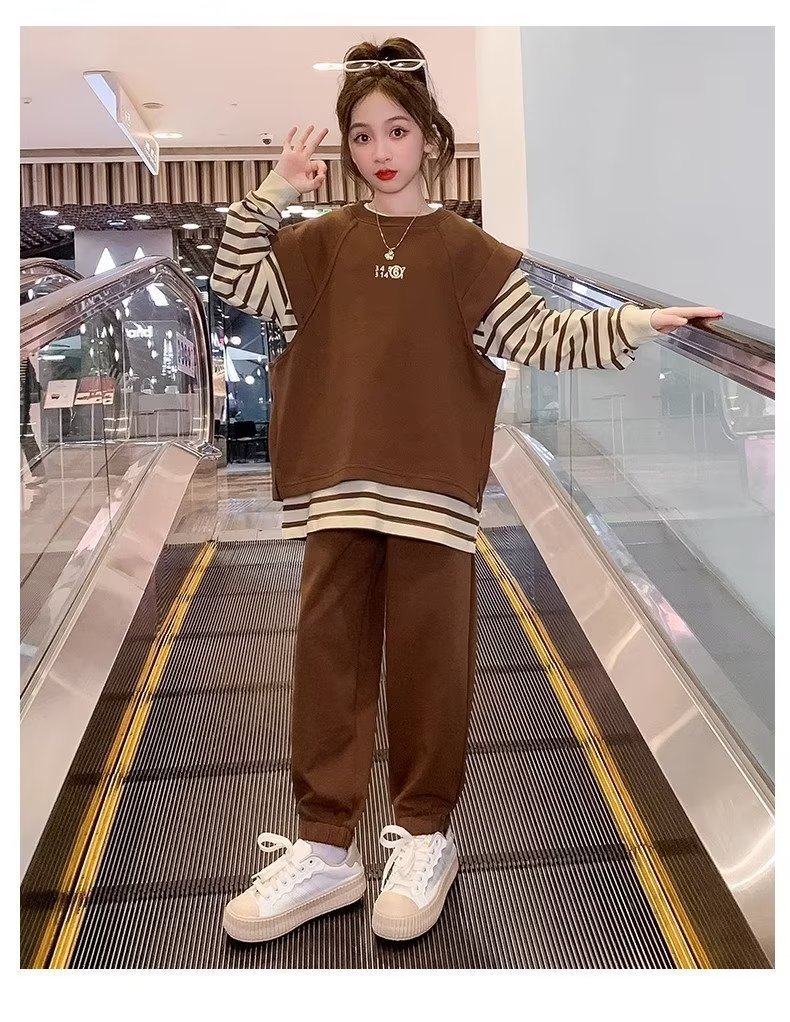 [복합 실버 여우 벨벳] 소녀 플러스 벨벳 세트 2024 겨울 새 소녀 서양식 가을과 겨울 두꺼운 스웨터