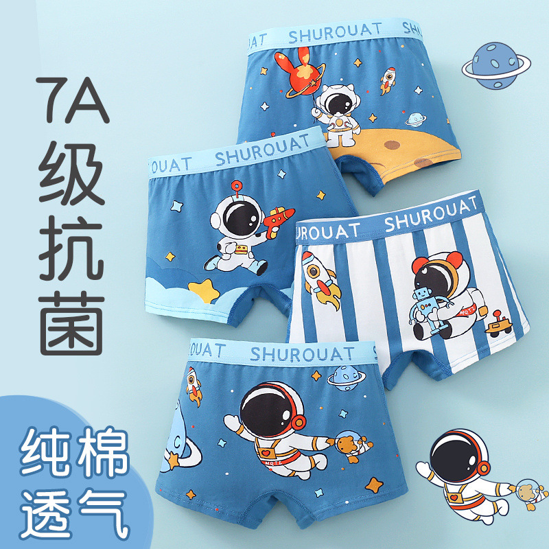 소년 속옷 면 복서 어린이 면 복서 반바지 아기 소년 소프트 우주 비행사스토어 가기
