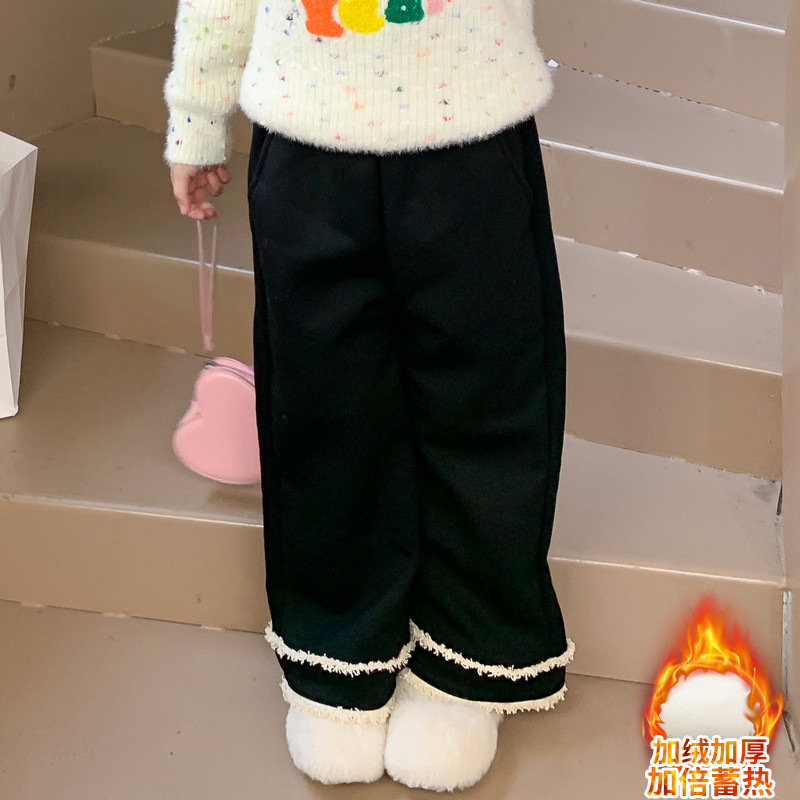 어린이 착용 소녀 기모 꽃 바지 겨울 새로운 어린이 서양식 유행 올 매치 캐주얼 바지 어린이 바지스토어 가기