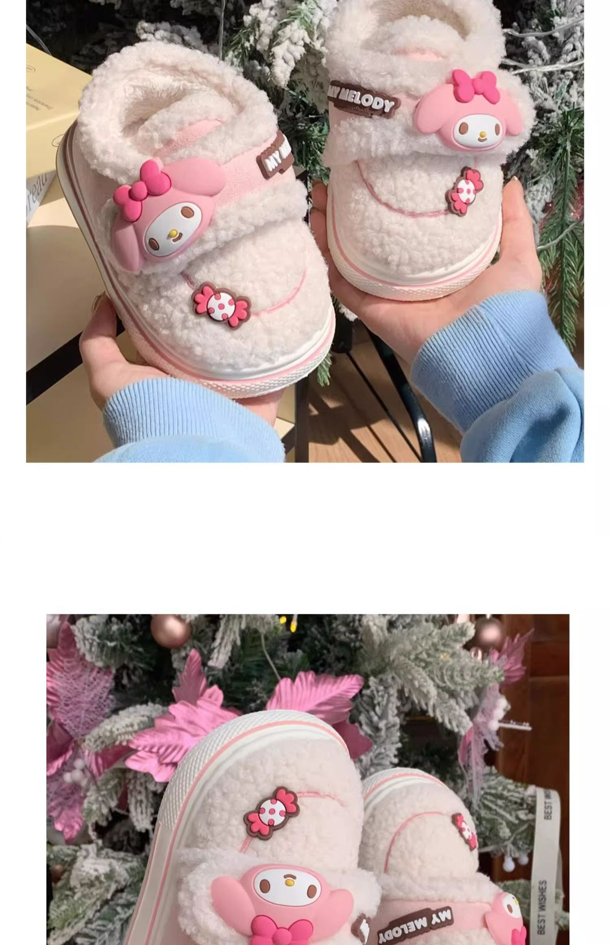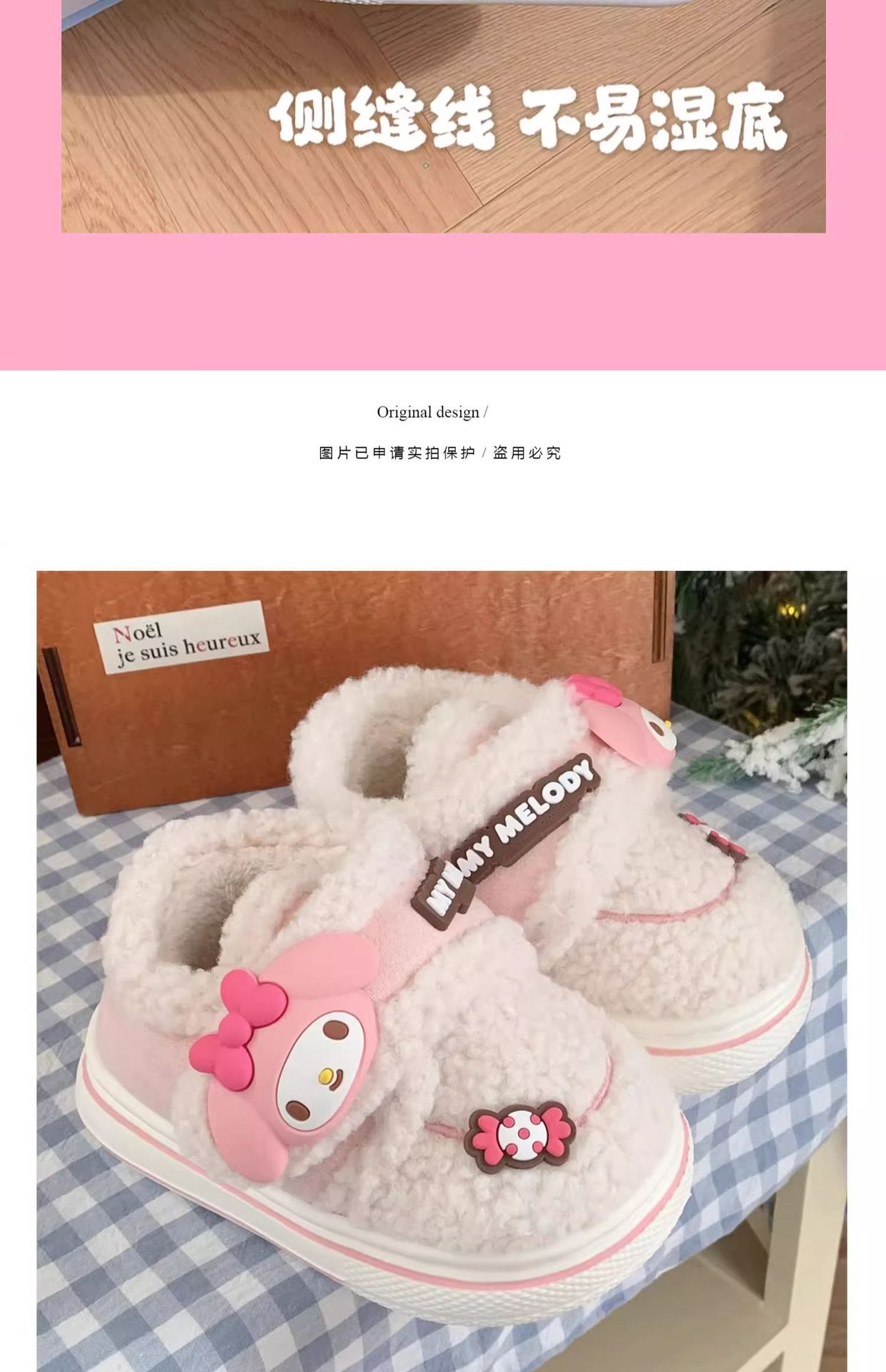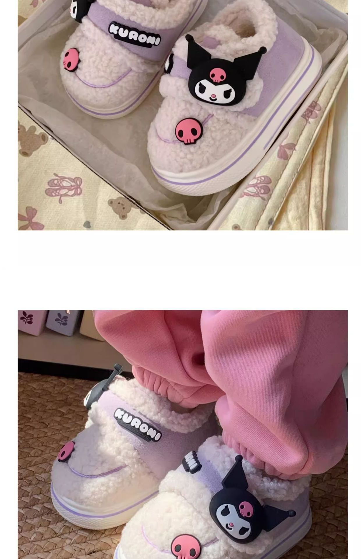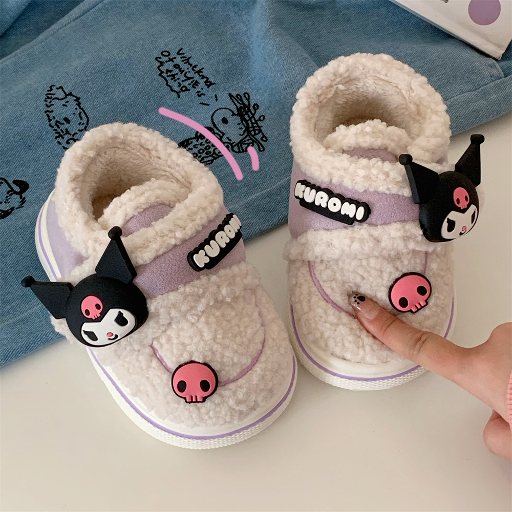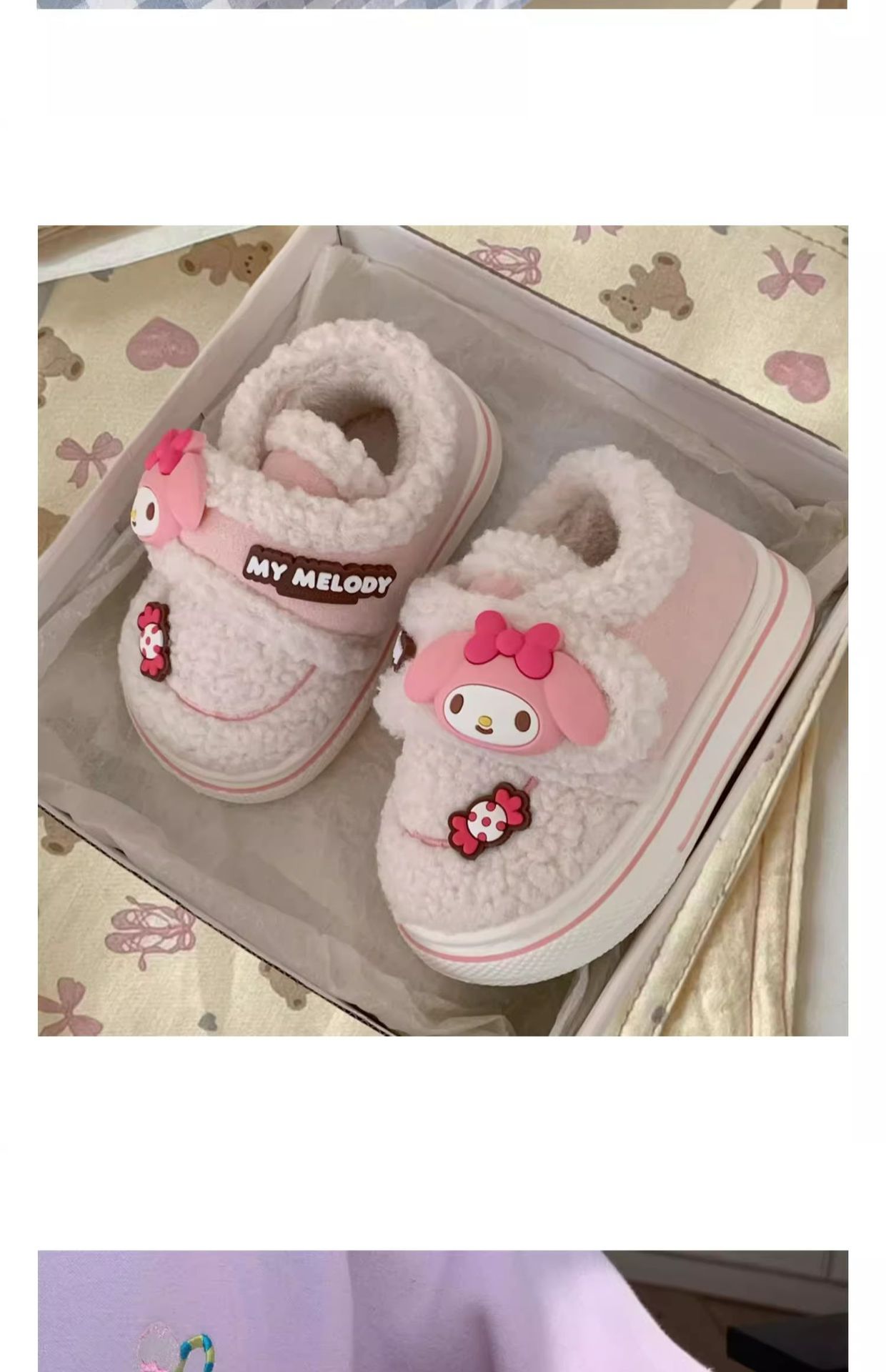 만화 따뜻한 편안한 소년과 소녀 실내 빵 신발 겨울 기모 산리오 어린이 벨크로 면 슬리퍼