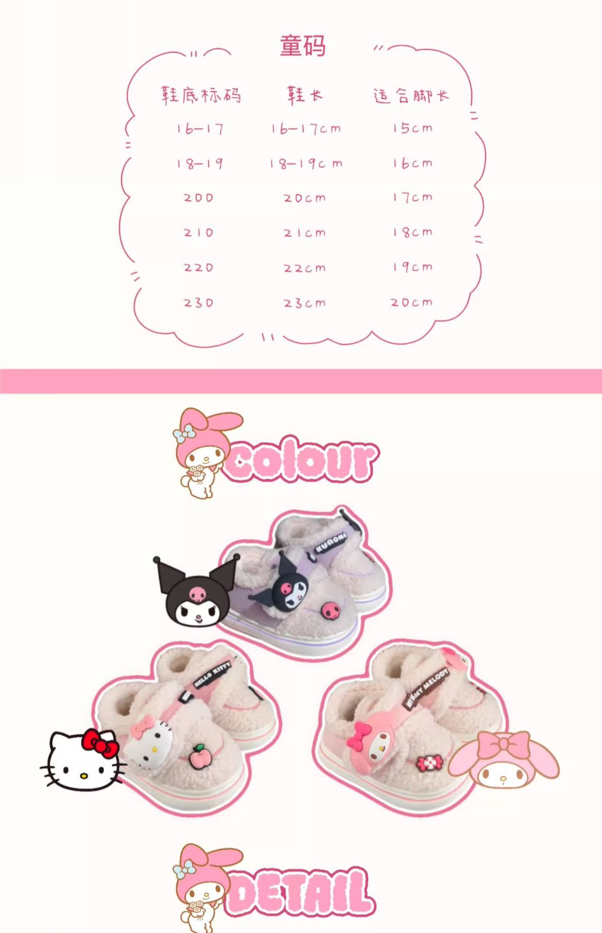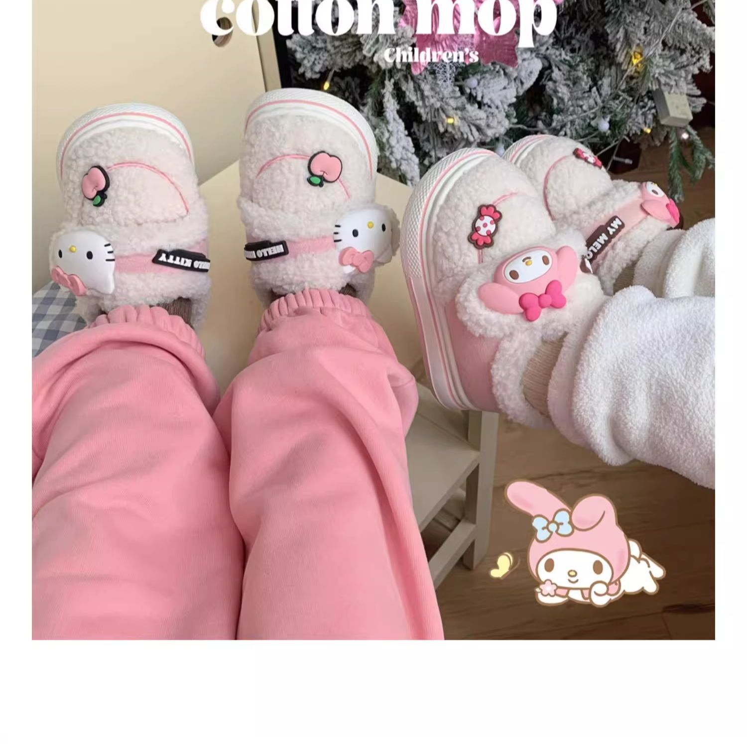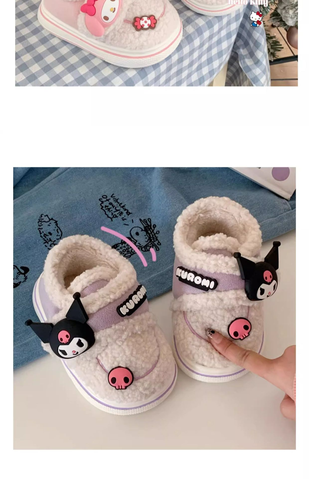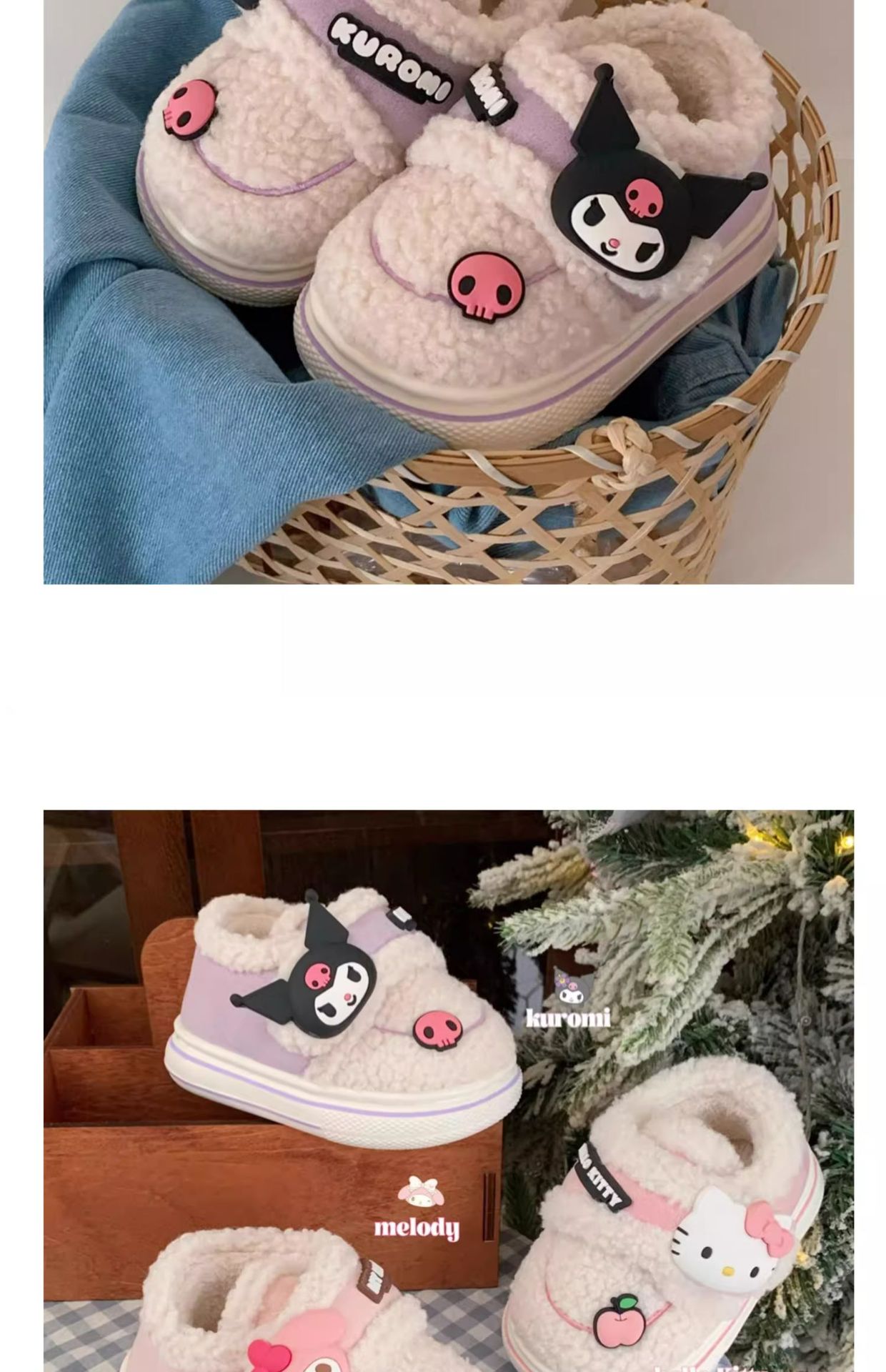 만화 따뜻한 편안한 소년과 소녀 실내 빵 신발 겨울 기모 산리오 어린이 벨크로 면 슬리퍼