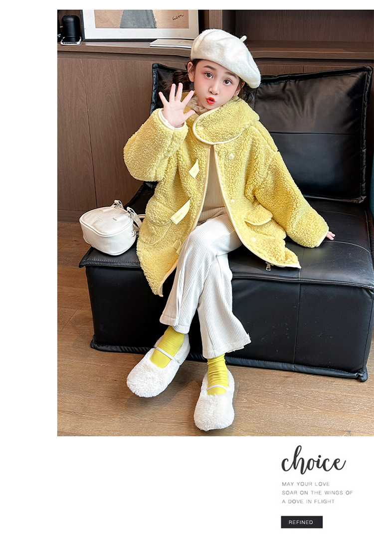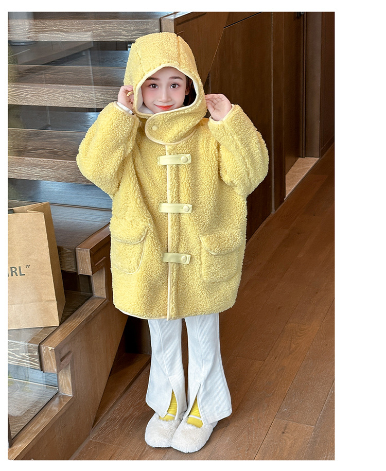 소녀 노란 모직 스웨터 두꺼운 기모 따뜻한 봉제 코트 2024 가을과 겨울 새로운 느슨한 면 패딩 재킷 코트