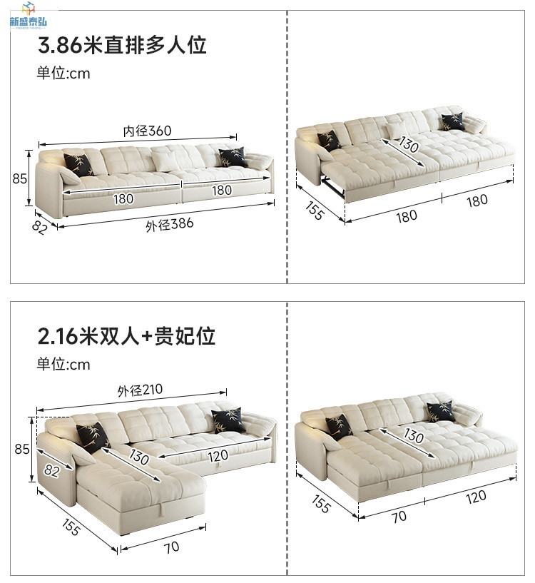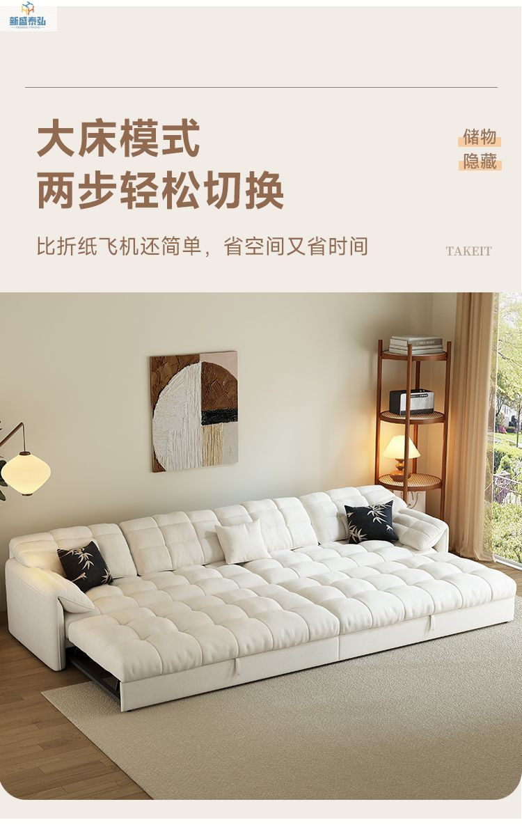 새로운 크림 스타일 코끼리 귀 제국 첩의 소파 침대 통합 이중 목적 망원경 다기능 거실 풀아웃 침대스토어 가기
