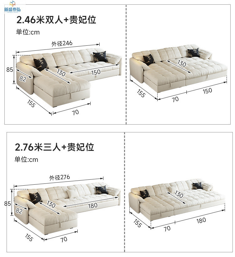 • 2.46m - 대형 더블 시트 + 황실 후궁 시트