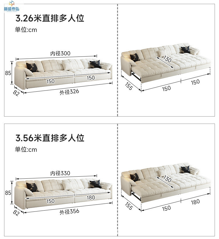 • 스트레이트 행 3.56m - 대형 더블 시트 + 3인 시트