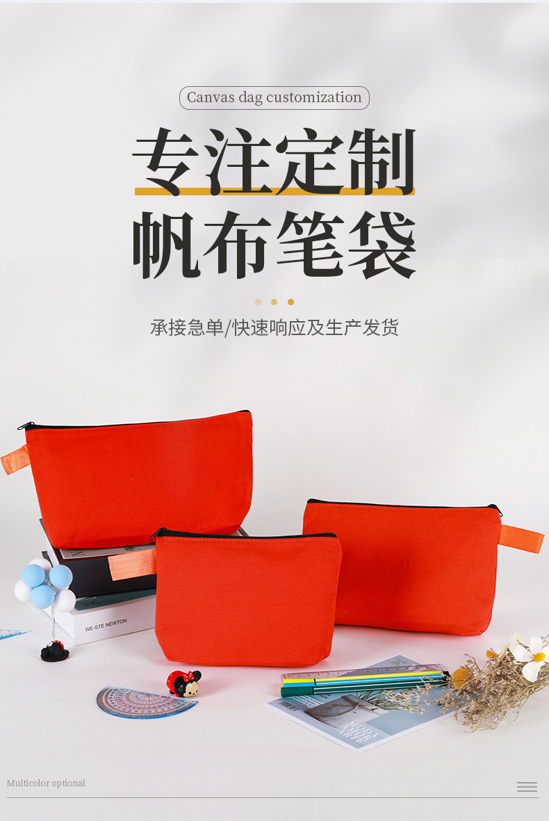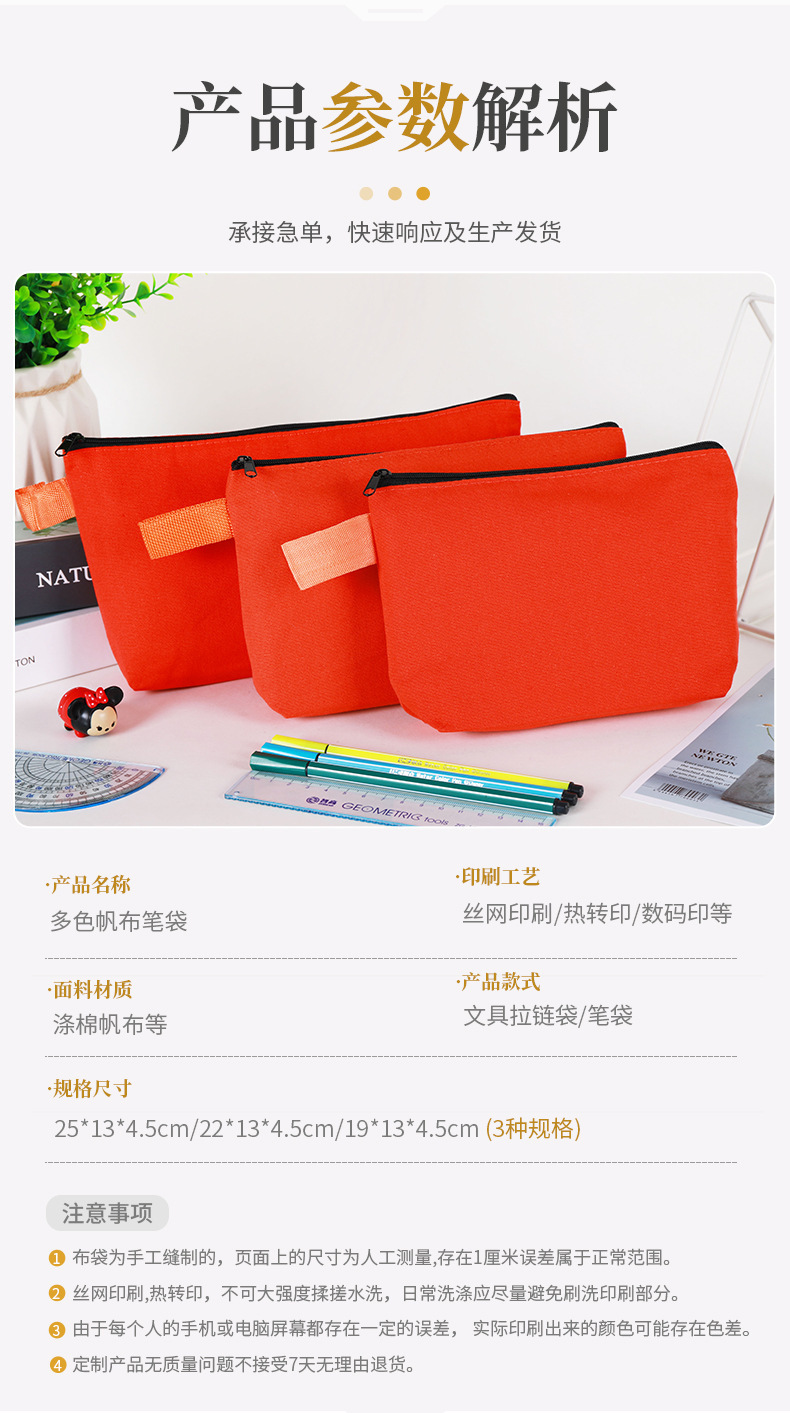 로고 아마존 컬러 캔버스 연필 가방 지퍼 휴대용 화장품 가방 마감 보관 문구 가방 도매 단순스토어 가기