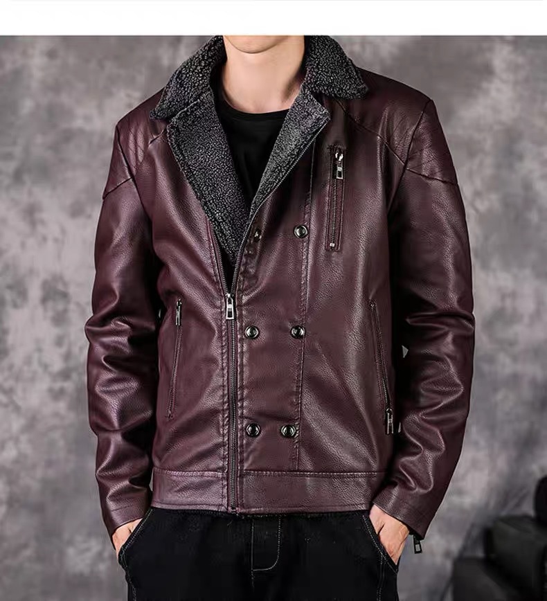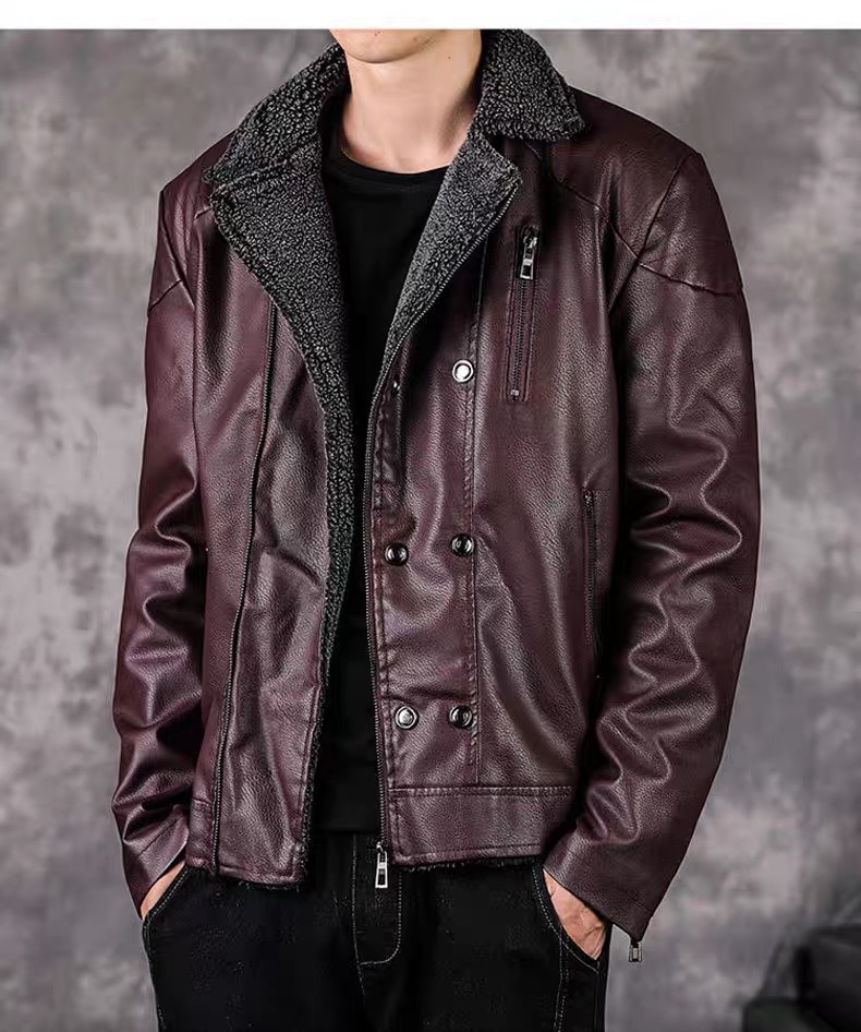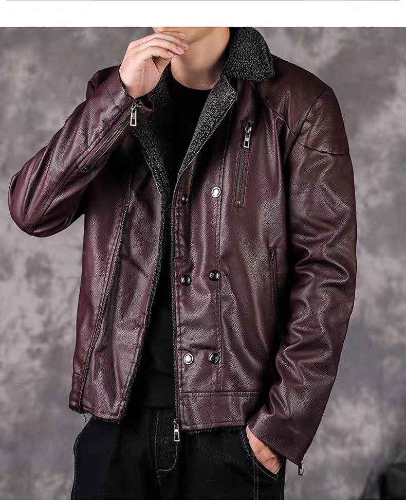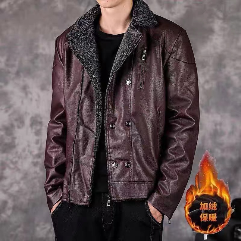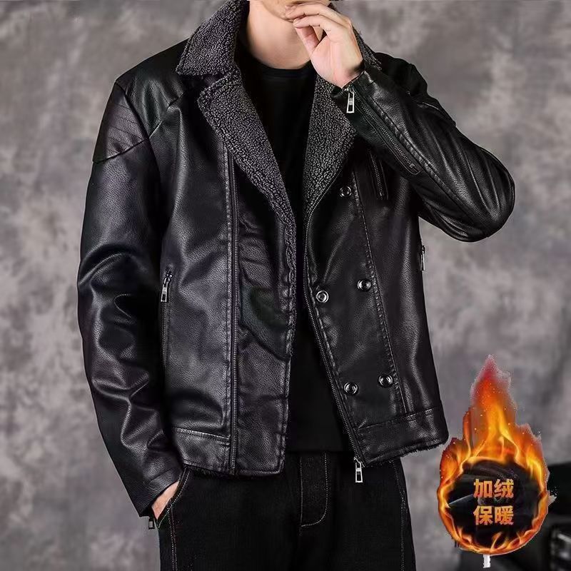 겨울 남성 정장 칼라 벨벳 가죽 재킷 한국 스타일 멋진 청년용 두꺼운 보온 재킷 바이커 가죽 벨벳 재킷