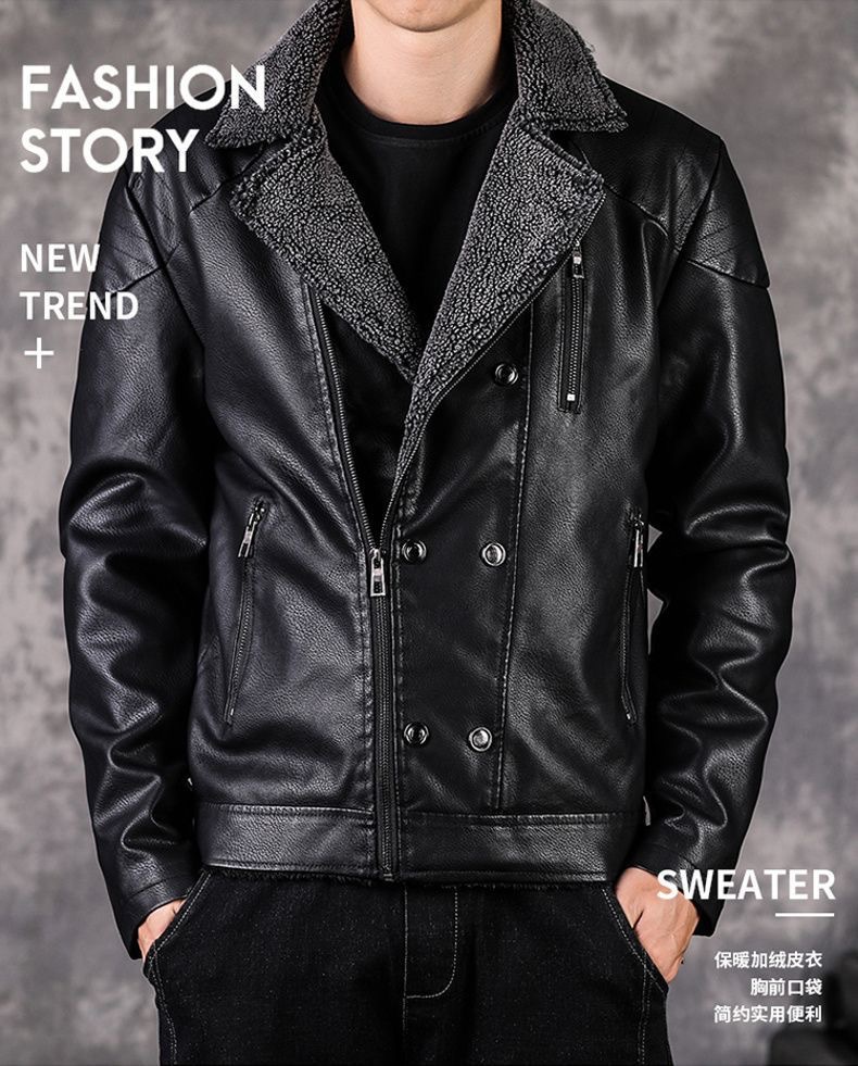 겨울 남성 정장 칼라 벨벳 가죽 재킷 한국 스타일 멋진 청년용 두꺼운 보온 재킷 바이커 가죽 벨벳 재킷스토어 가기