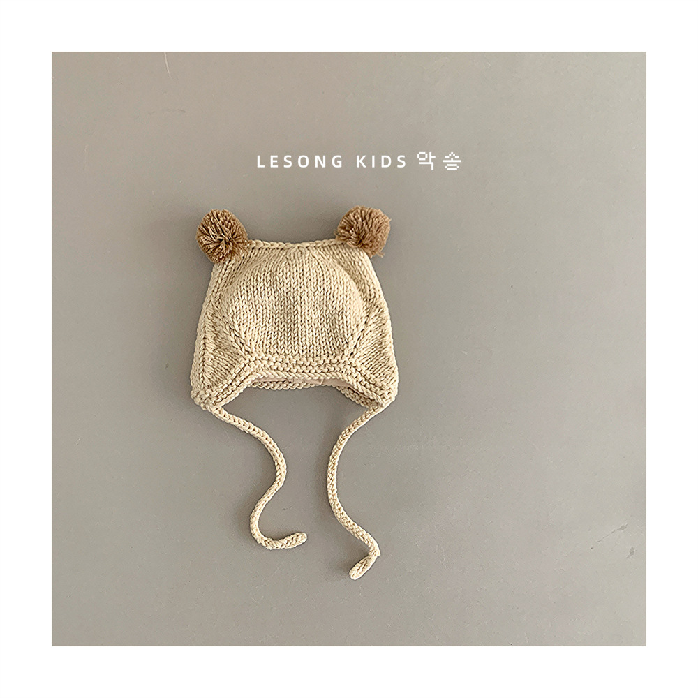 한국 아기 모자 가을과 겨울 따뜻한 아기 울 모자 귀여운 수제 양모 모자 귀 보호 어린이 풀오버 모자