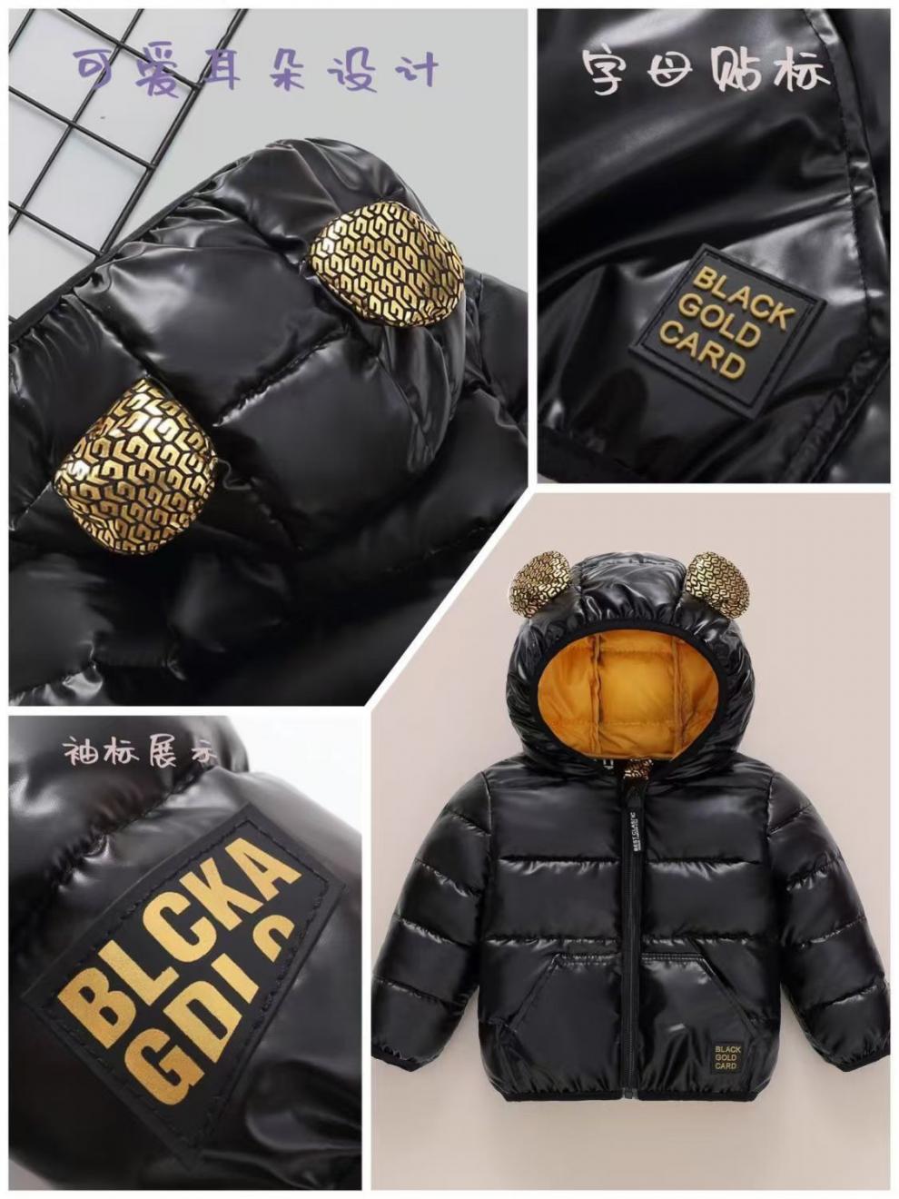 소년과 소녀를위한 새로운 워시프리 블랙 골드 어린이 다운 코튼 패딩 재킷 후드 가을 및 겨울 따뜻한 안티 시즌 새 재킷 안티 시즌 어린이 의류