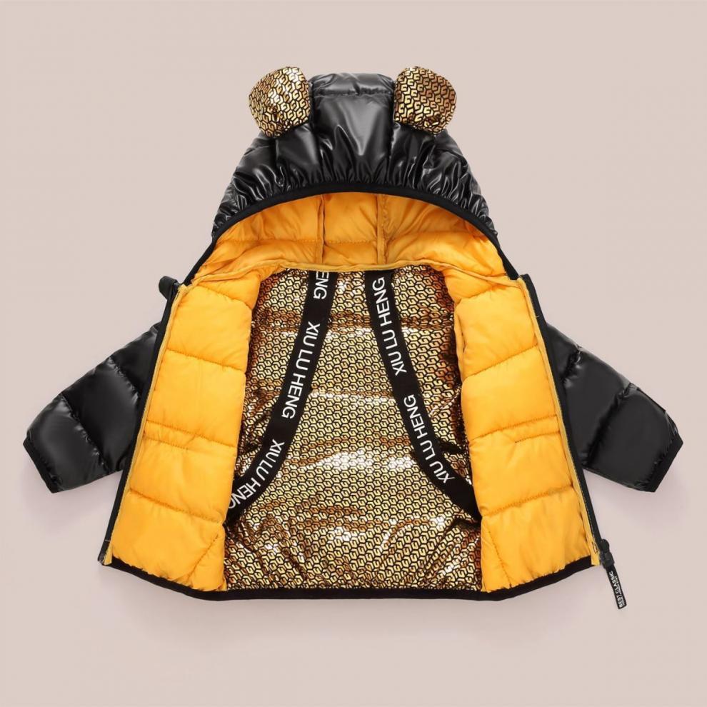 소년과 소녀를위한 새로운 워시프리 블랙 골드 어린이 다운 코튼 패딩 재킷 후드 가을 및 겨울 따뜻한 안티 시즌 새 재킷 안티 시즌 어린이 의류스토어 가기