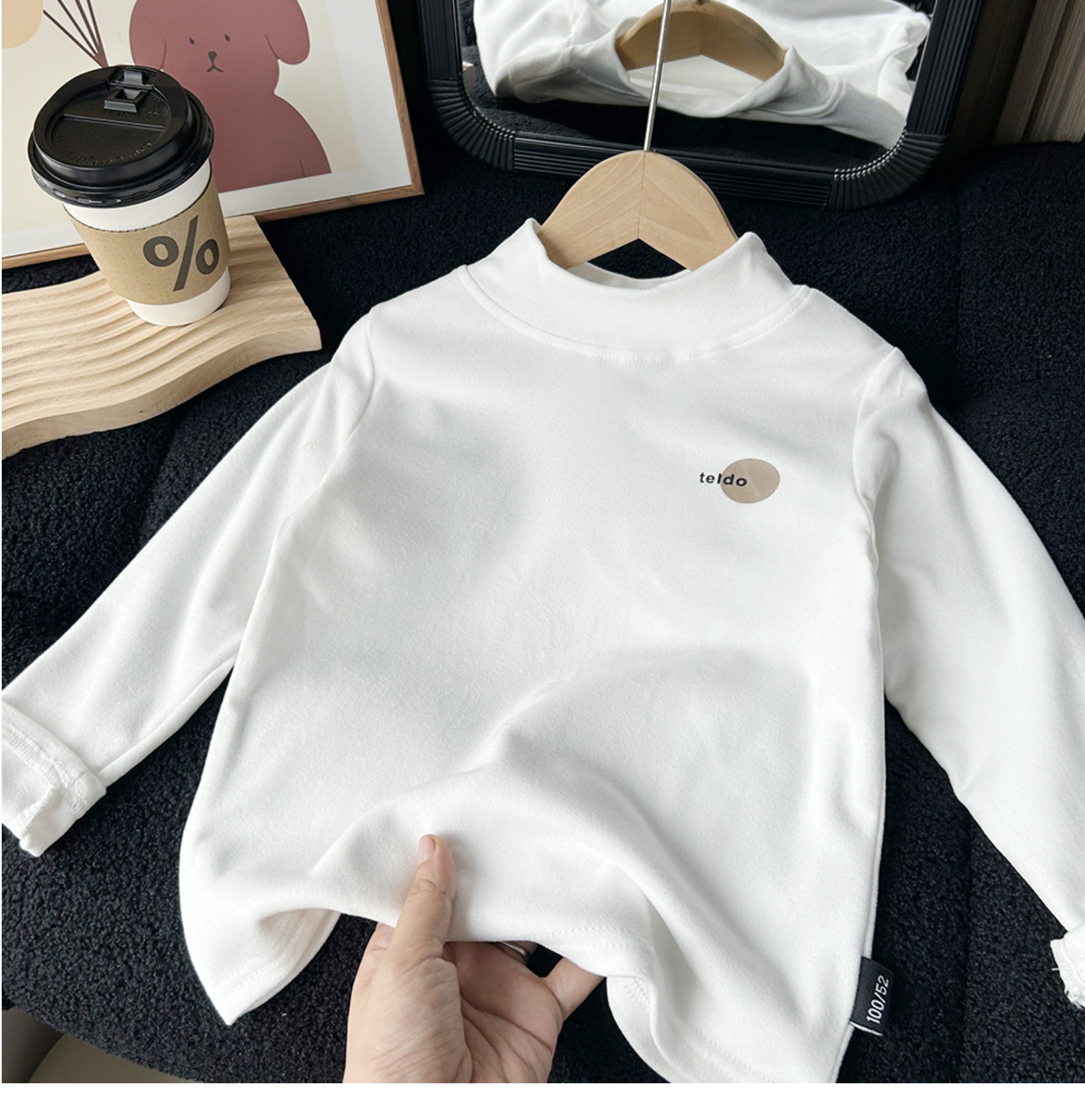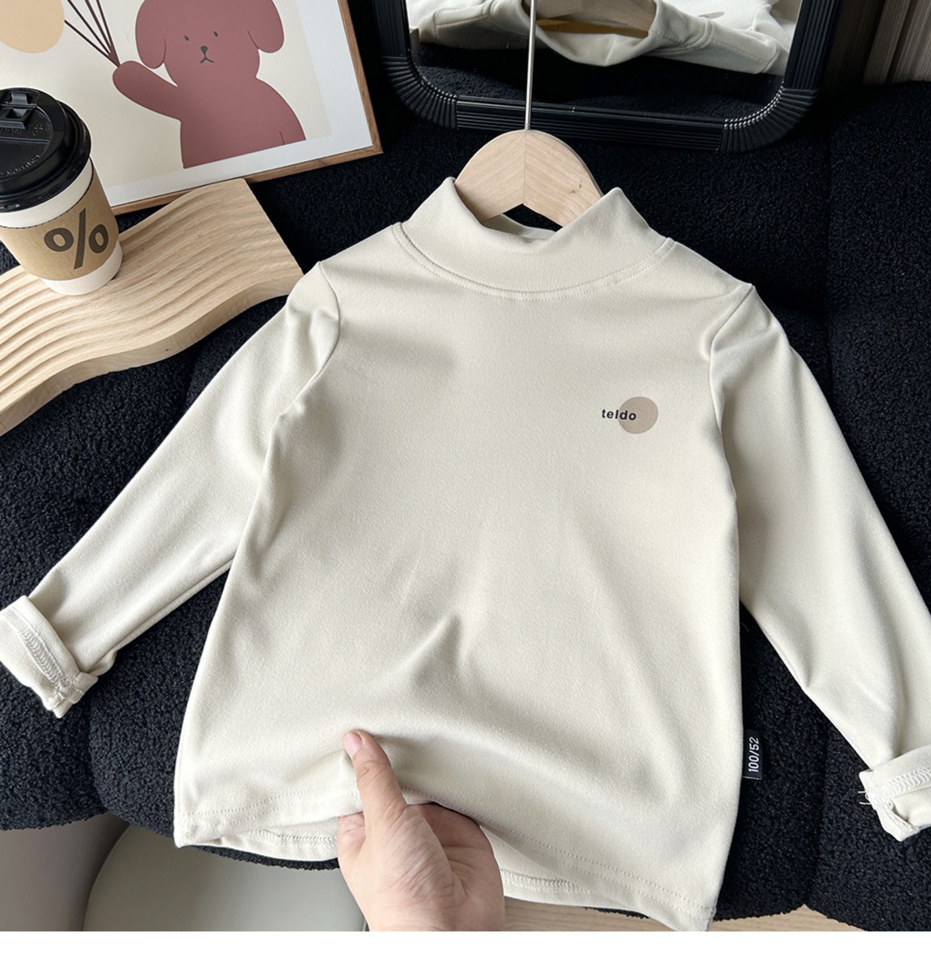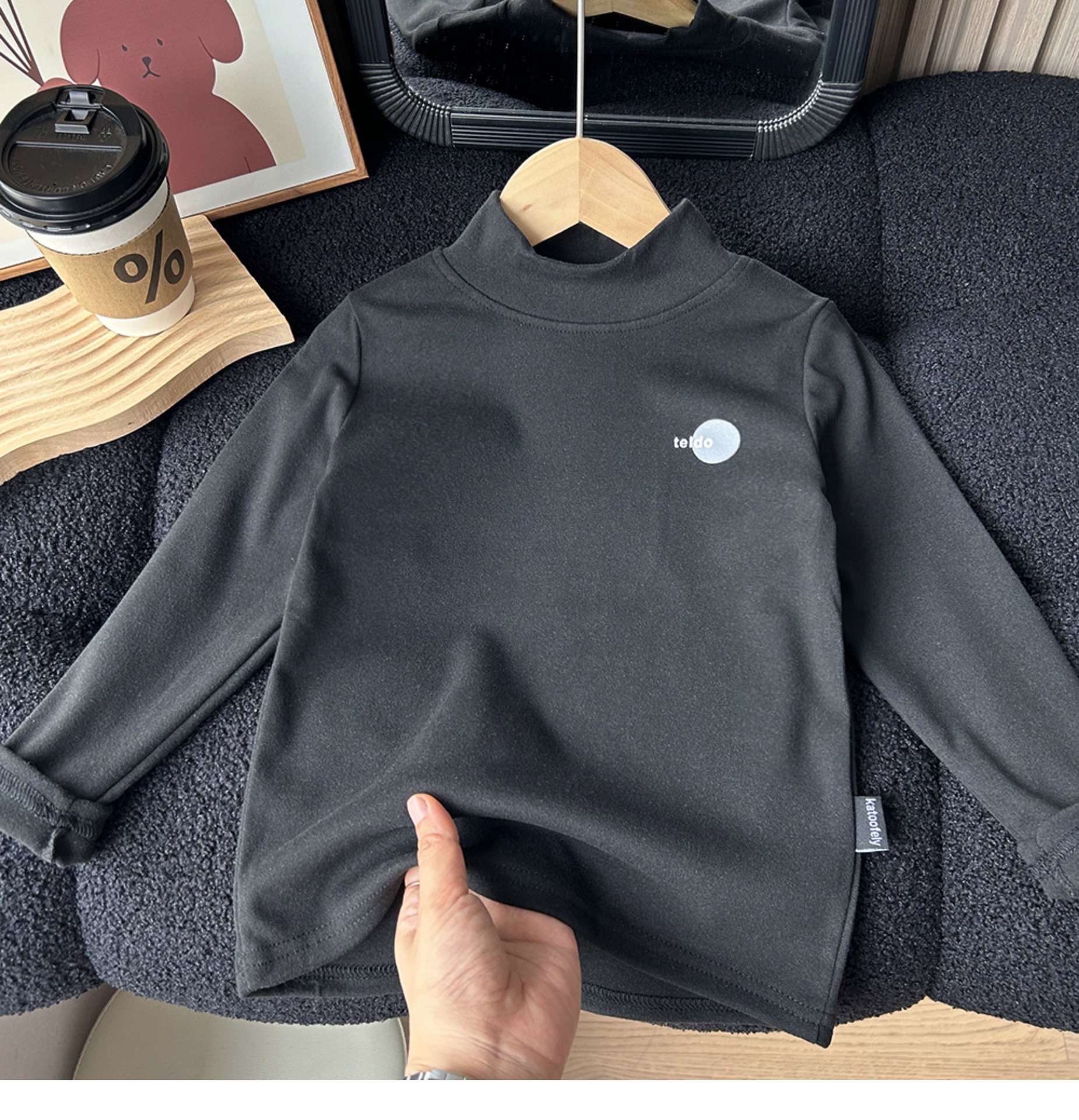 어린이 가을과 겨울 양털베이스 셔츠 큰 소년과 소녀 아기 반 높이 칼라 따뜻한 탑 양털 긴팔 티셔츠스토어 가기