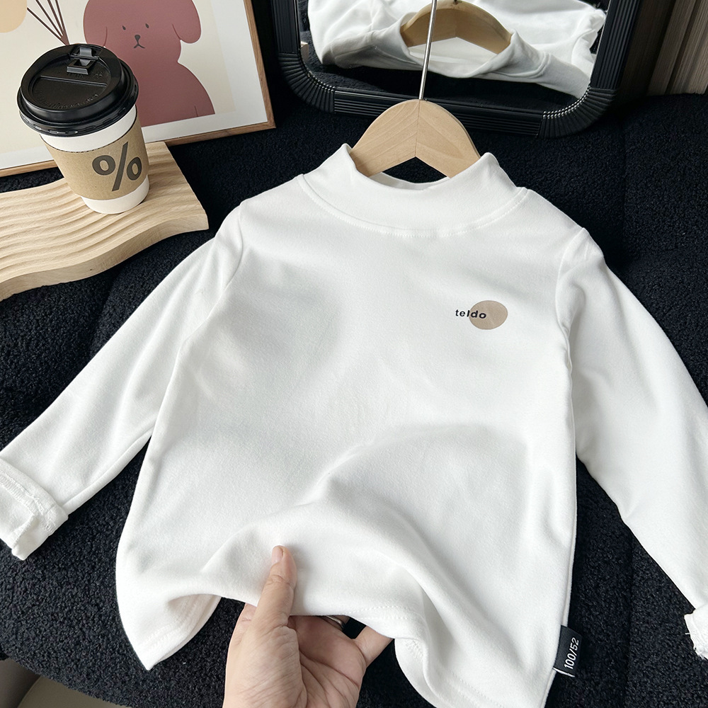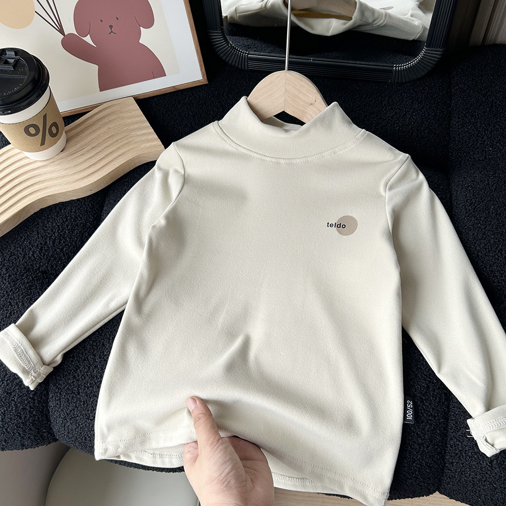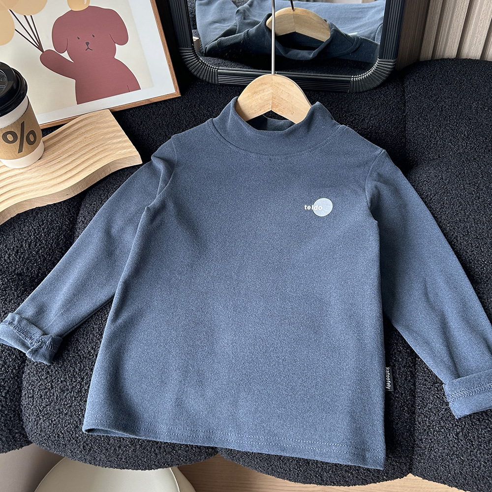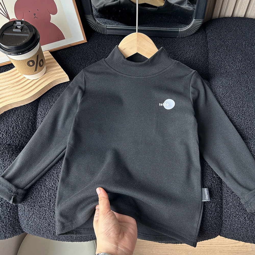 어린이 가을과 겨울 양털베이스 셔츠 큰 소년과 소녀 아기 반 높이 칼라 따뜻한 탑 양털 긴팔 티셔츠