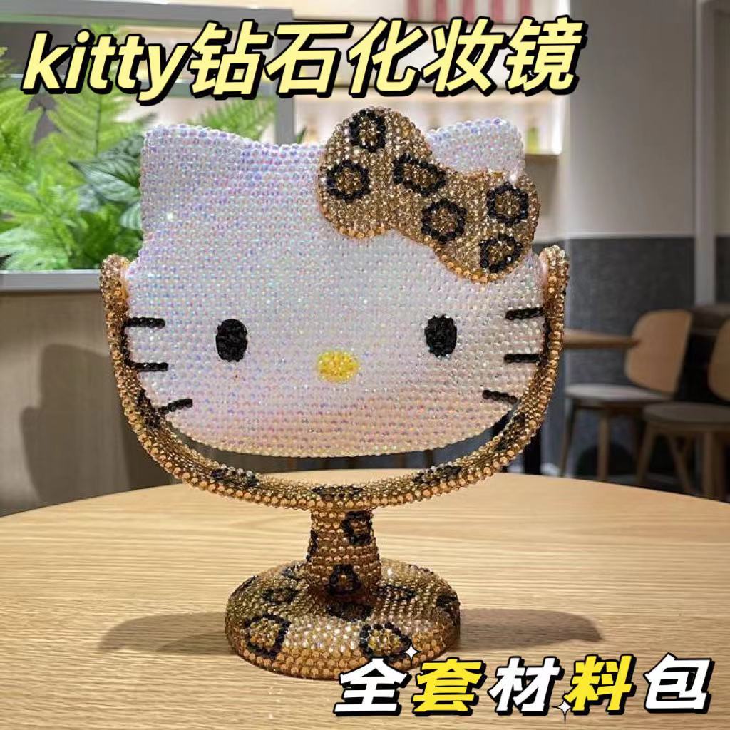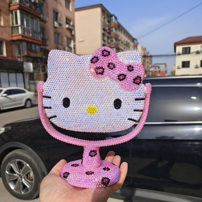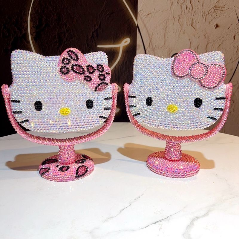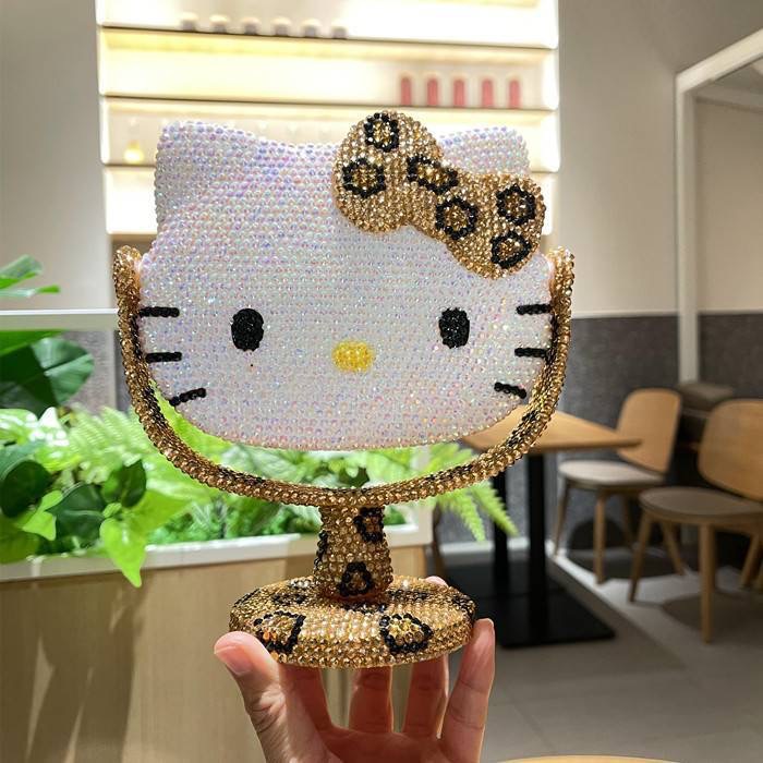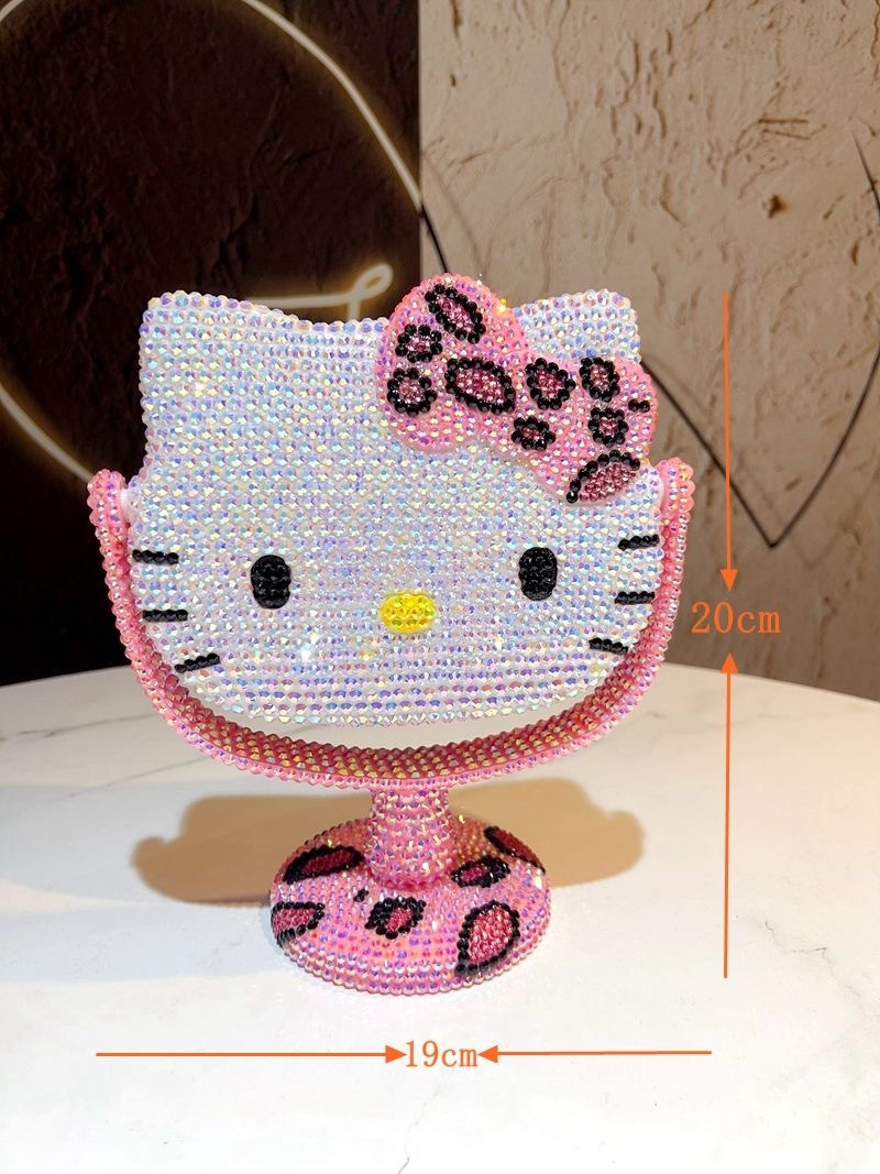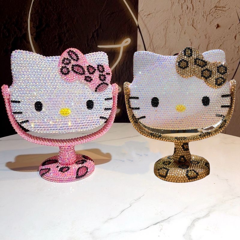 헬로 키티 고양이 레오파드 다이아몬드 거울 공주 회전 데스크톱 거울 KT 메이크업 거울 핑크 DIY 다이아몬드스토어 가기