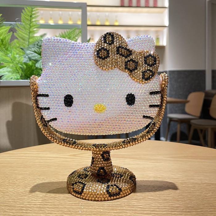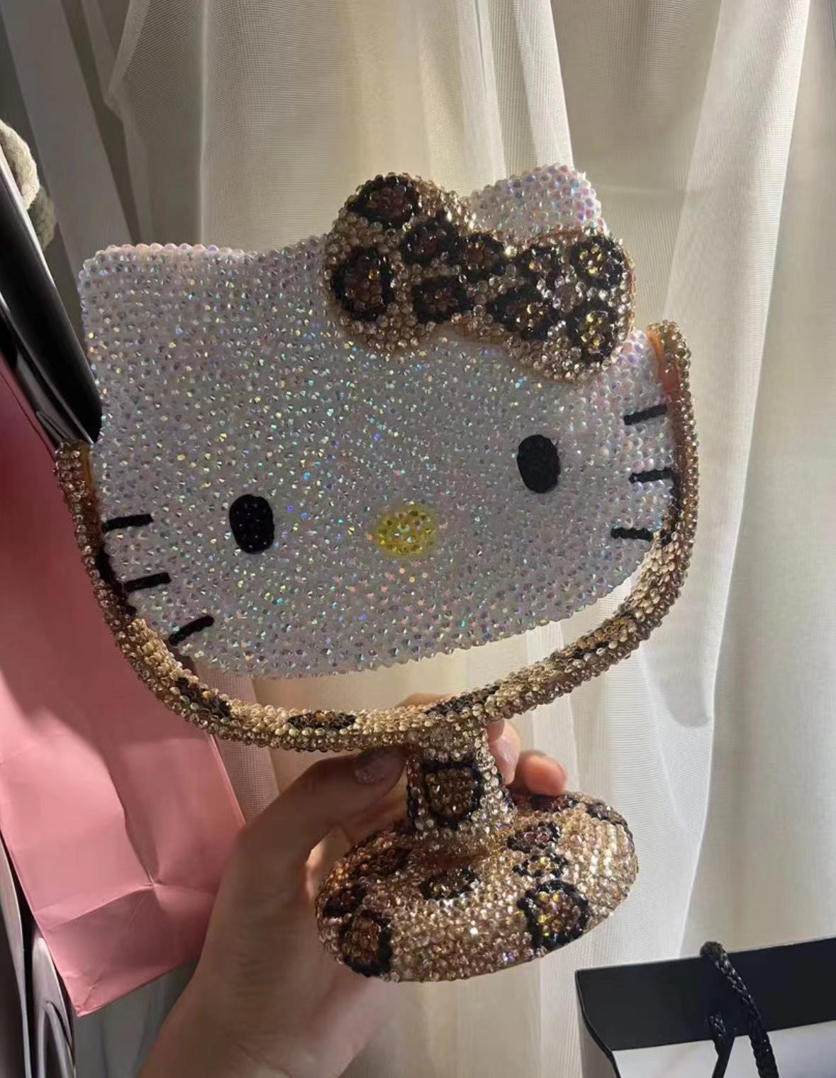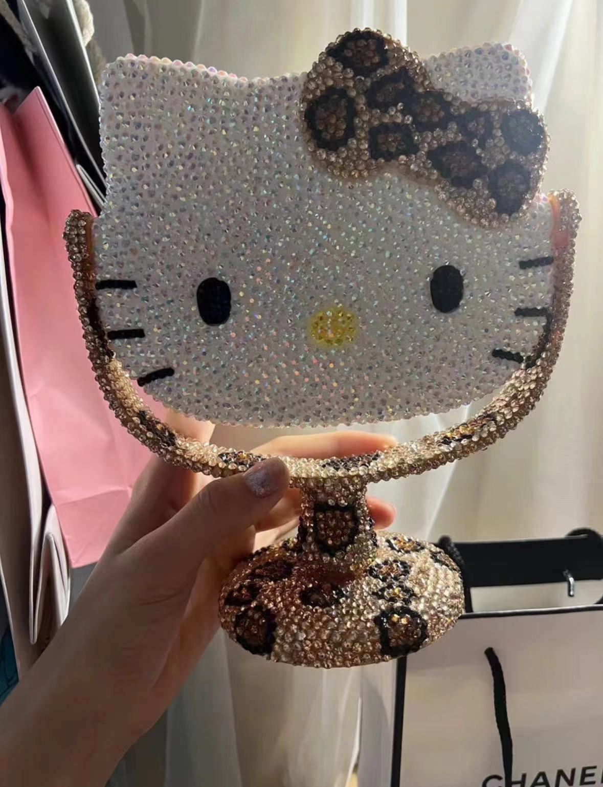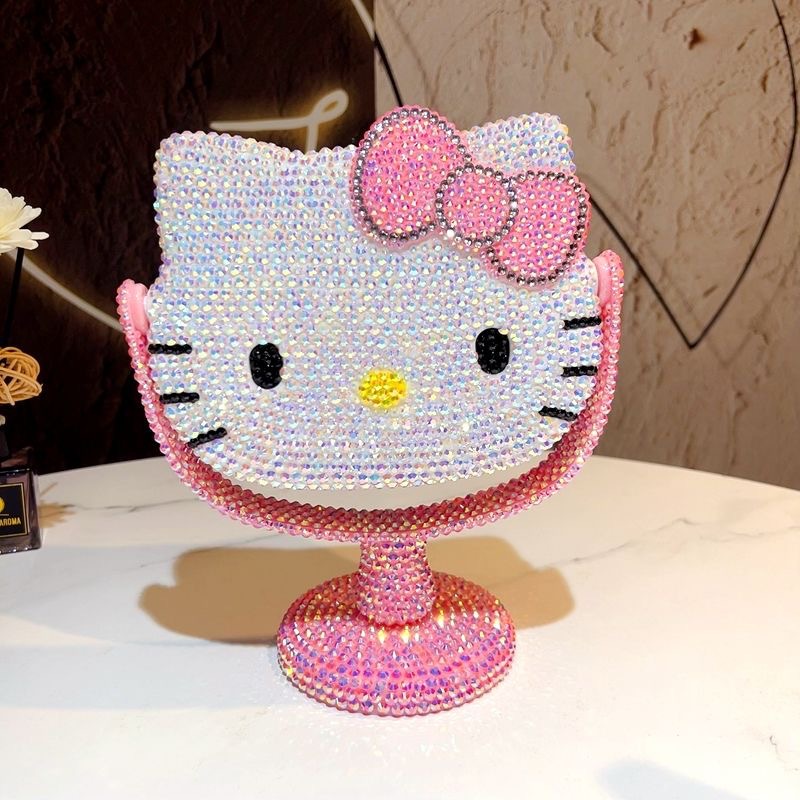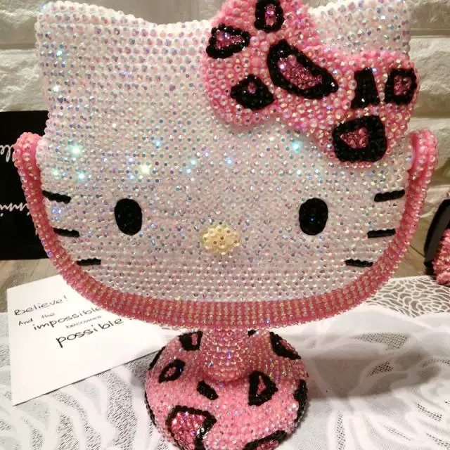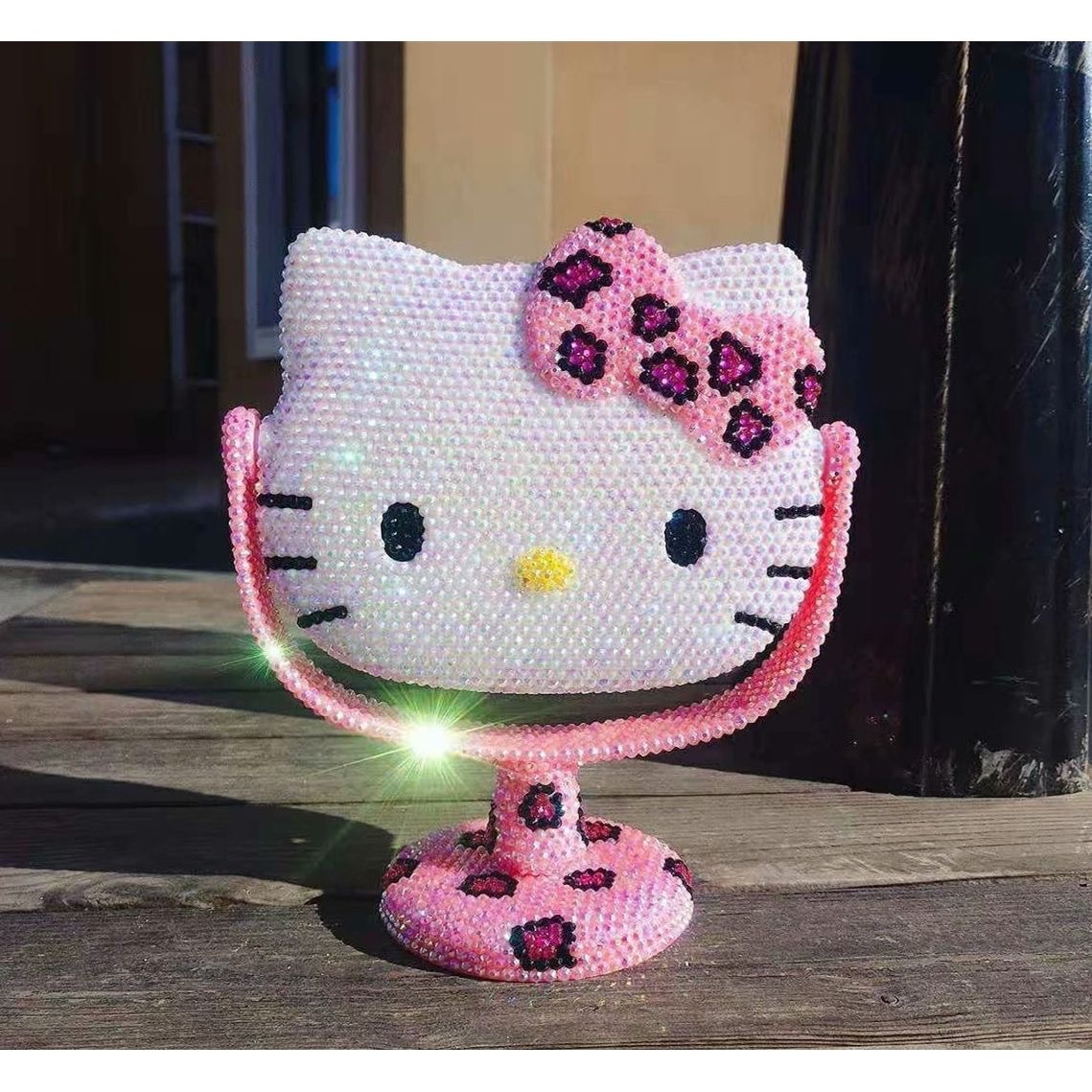 헬로 키티 고양이 레오파드 다이아몬드 거울 공주 회전 데스크톱 거울 KT 메이크업 거울 핑크 DIY 다이아몬드스토어 가기
