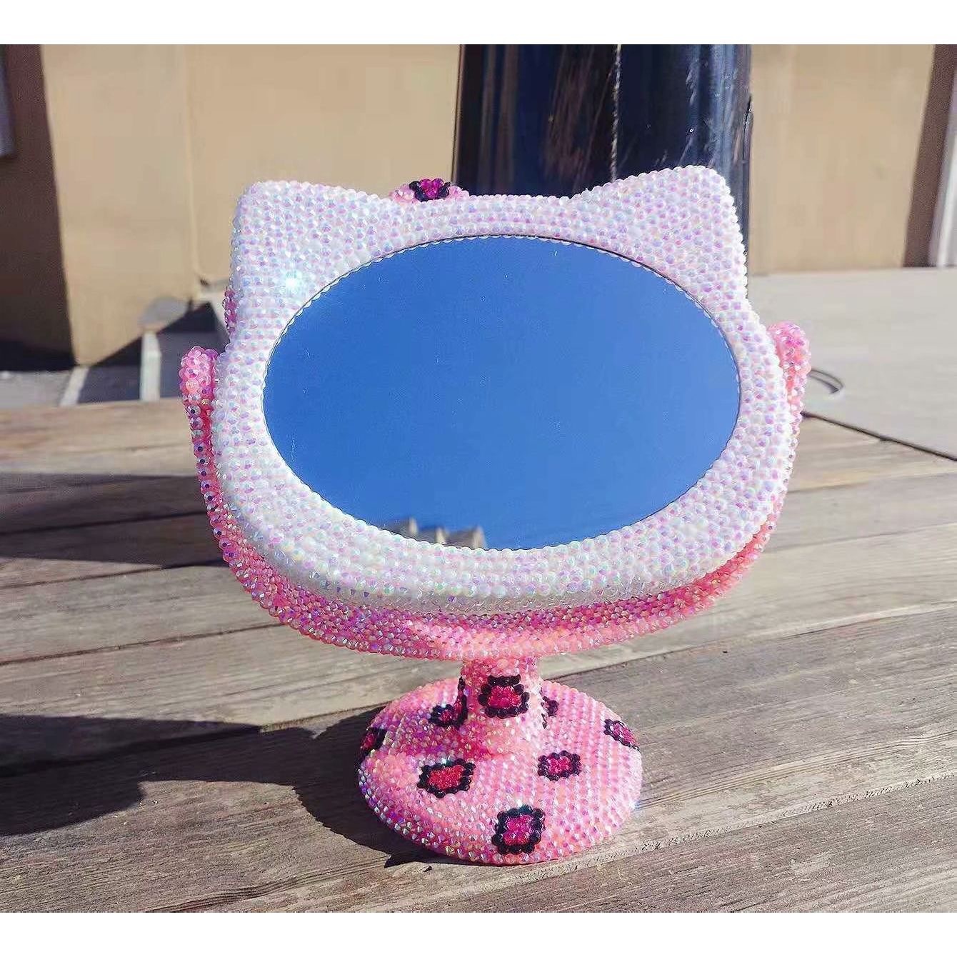 헬로 키티 고양이 레오파드 다이아몬드 거울 공주 회전 데스크톱 거울 KT 메이크업 거울 핑크 DIY 다이아몬드