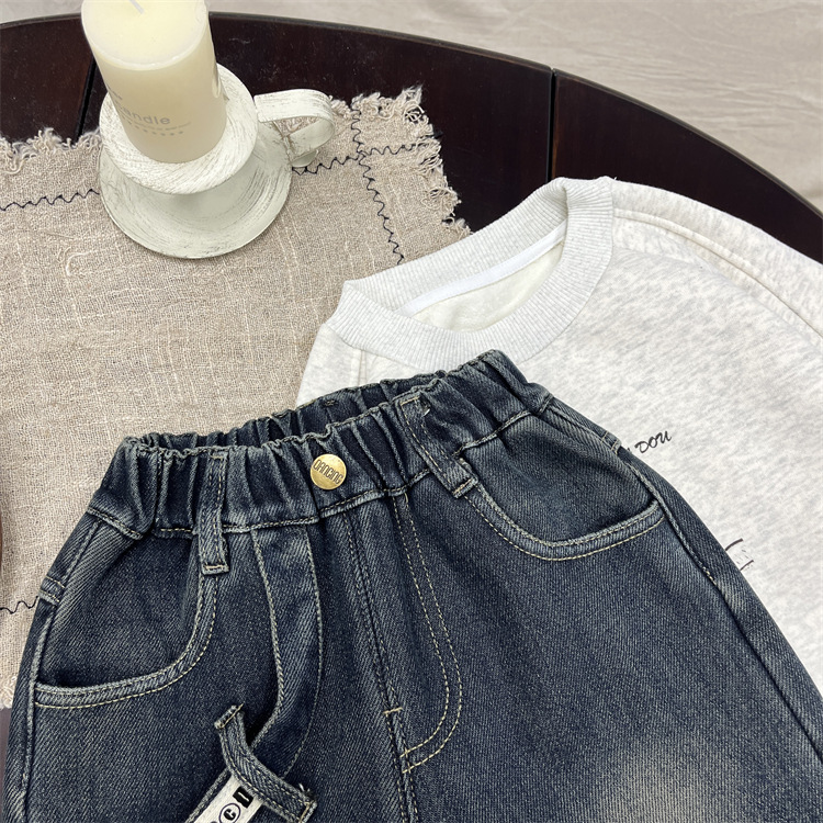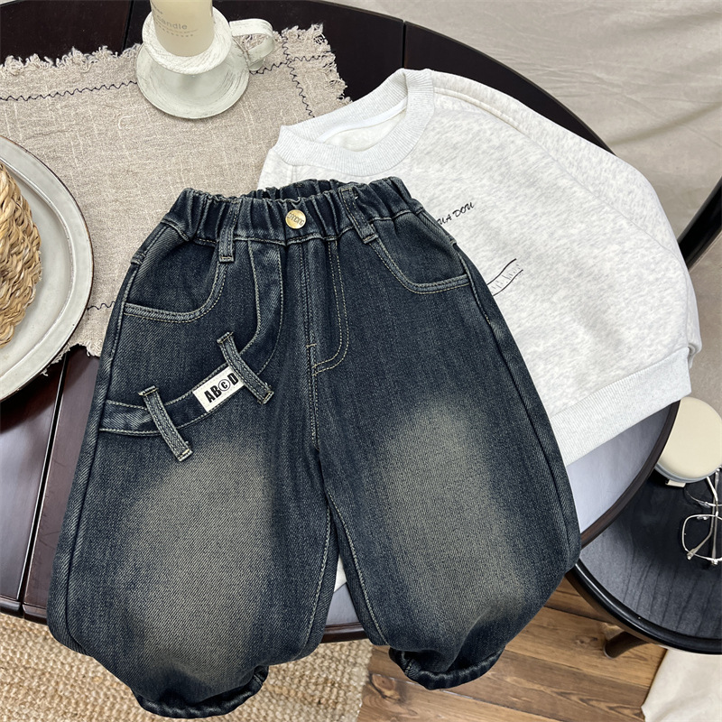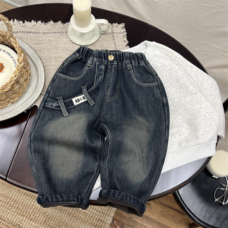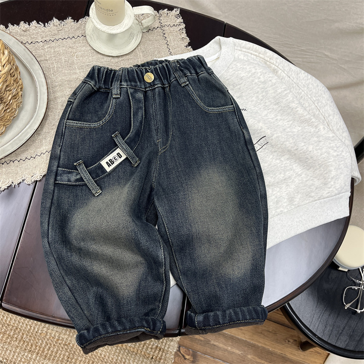 아기 바지 소년 청바지 큰 PP 바지 두꺼운 겨울 한국 스타일 청바지 바지 겨울 착용스토어 가기