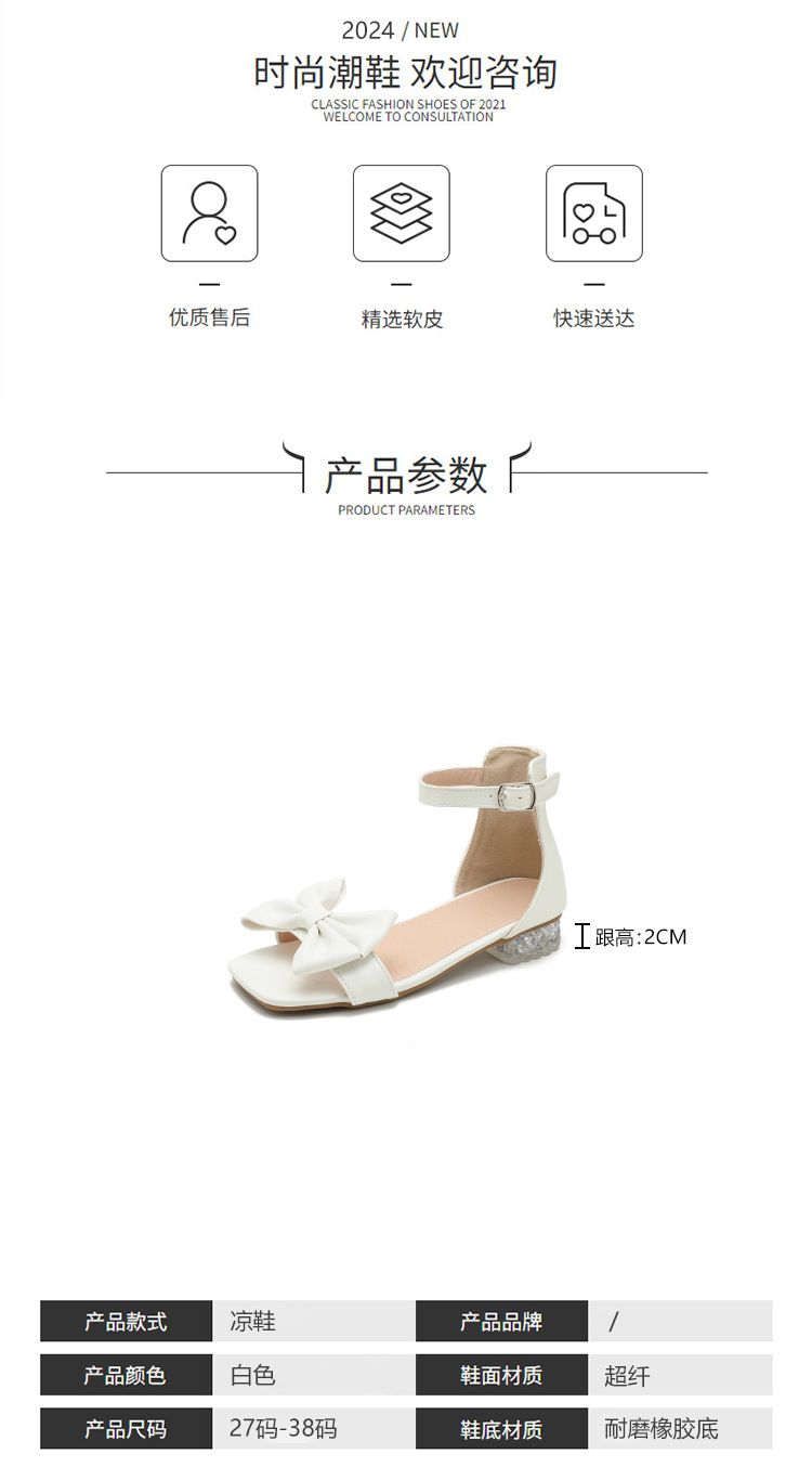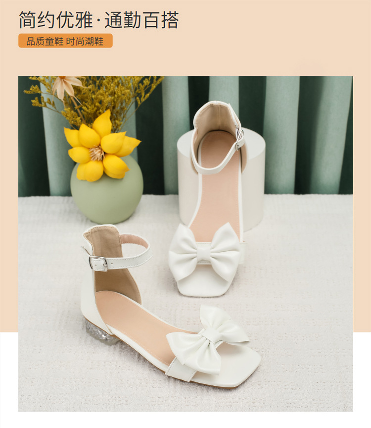 대외 무역 소녀 하이힐 샌들 여름 새로운 부드러운 밑창 활 한국어 버전 크리스탈 공주 오픈 발가락 중대형 어린이 샌들