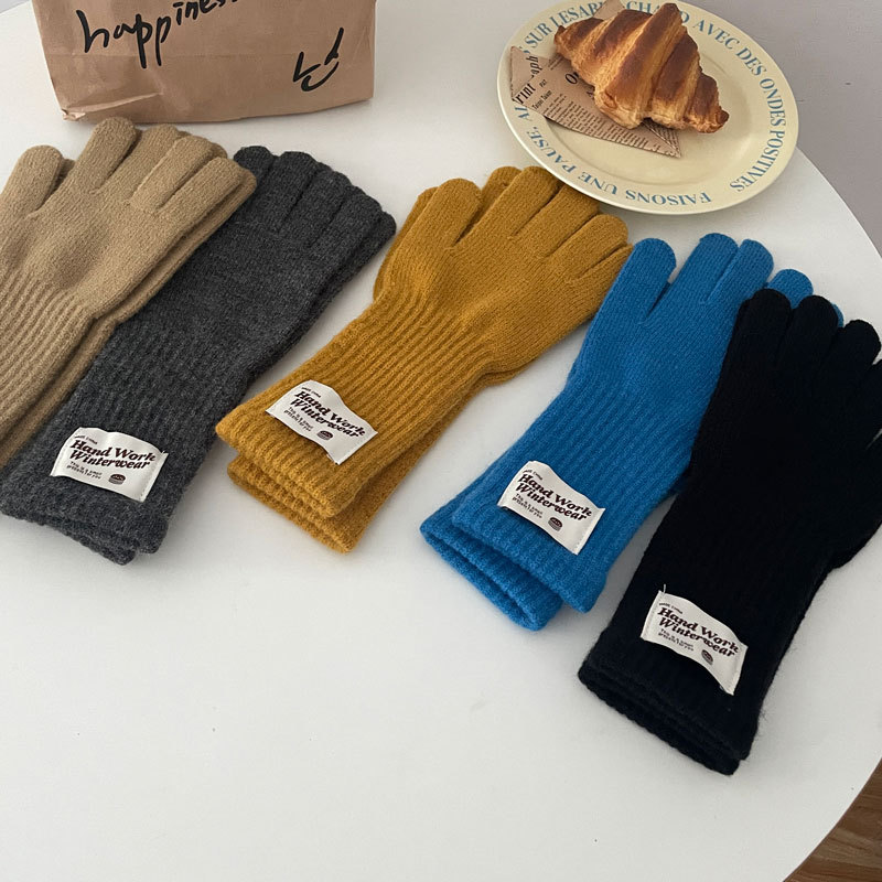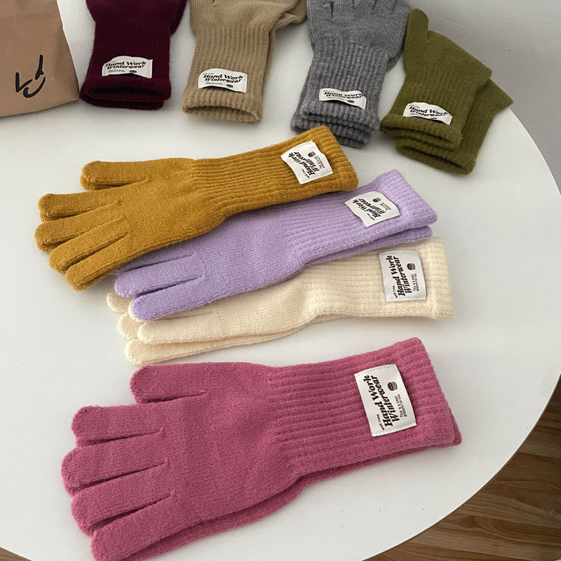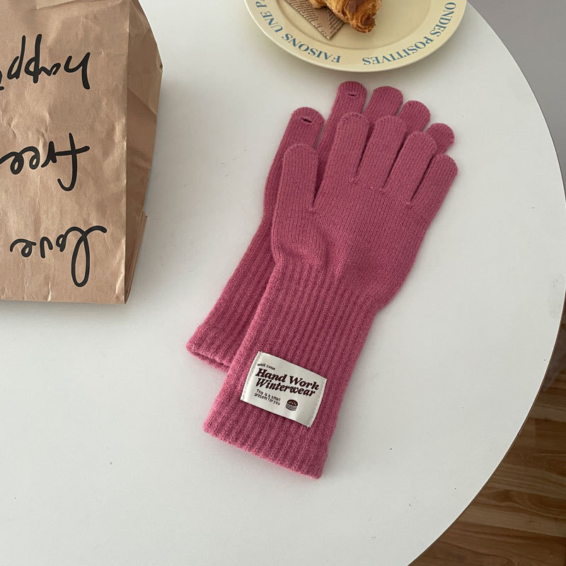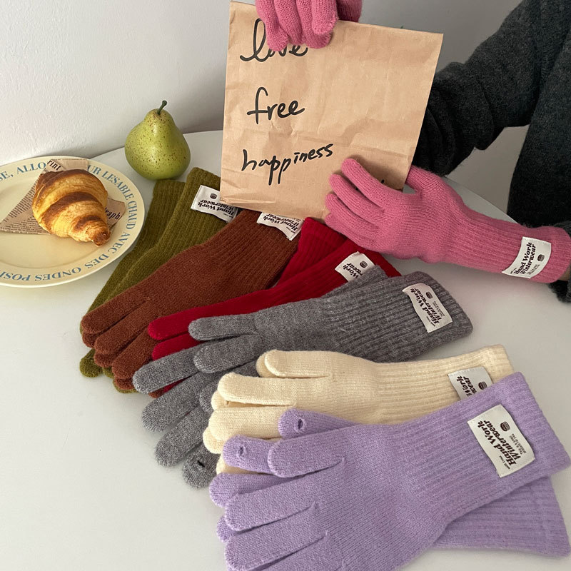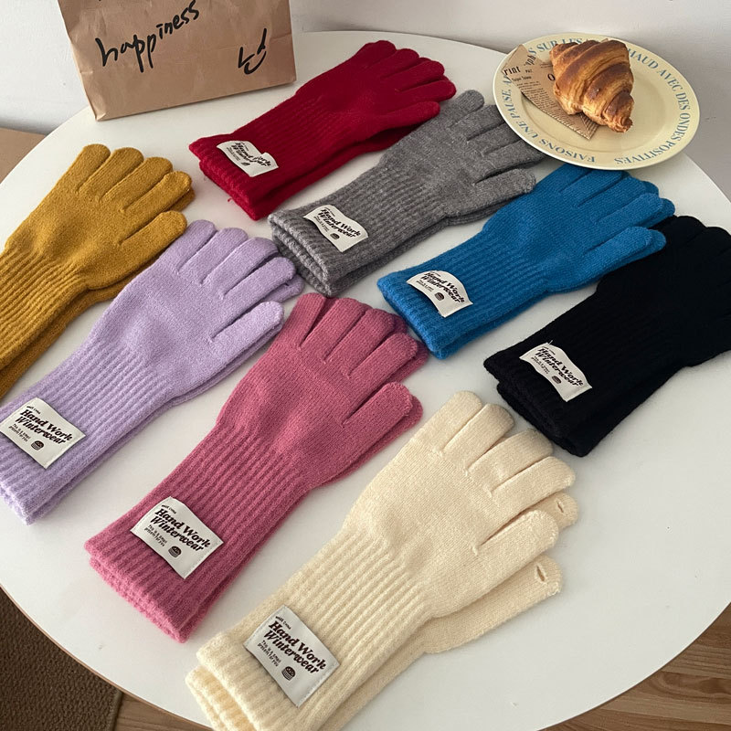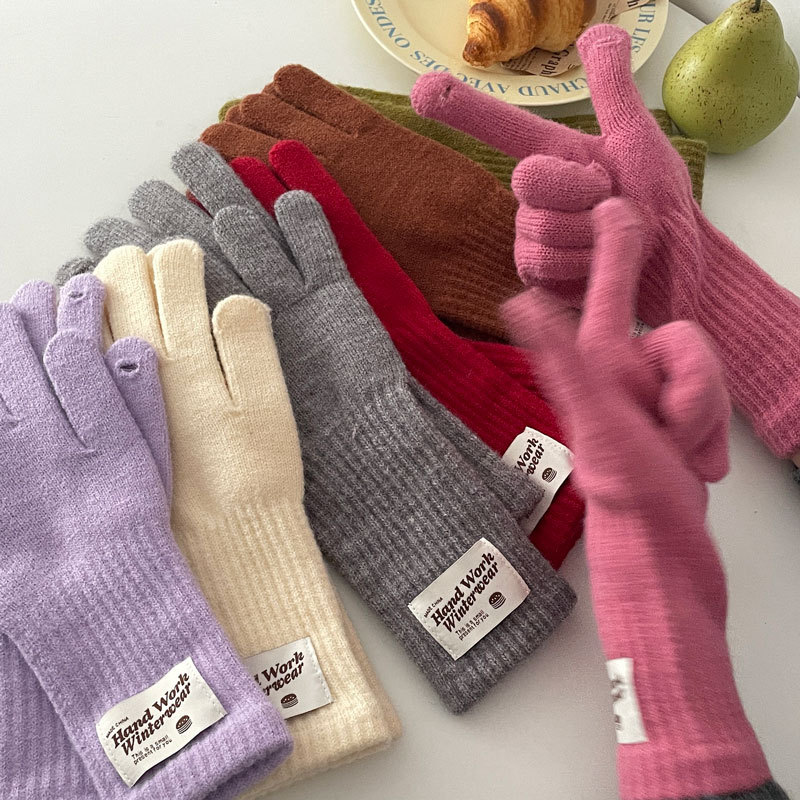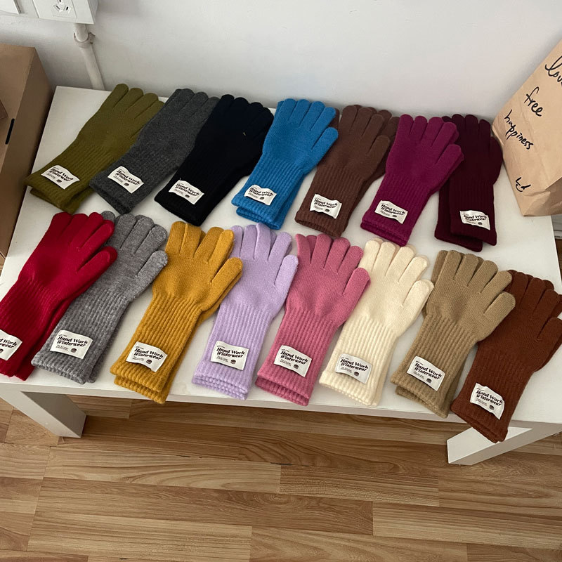 24 가을과 겨울 새로운 단색 다섯 손가락 손가락 장갑 여성의 터치 스크린 겨울 따뜻한 니트 장갑을 타고스토어 가기