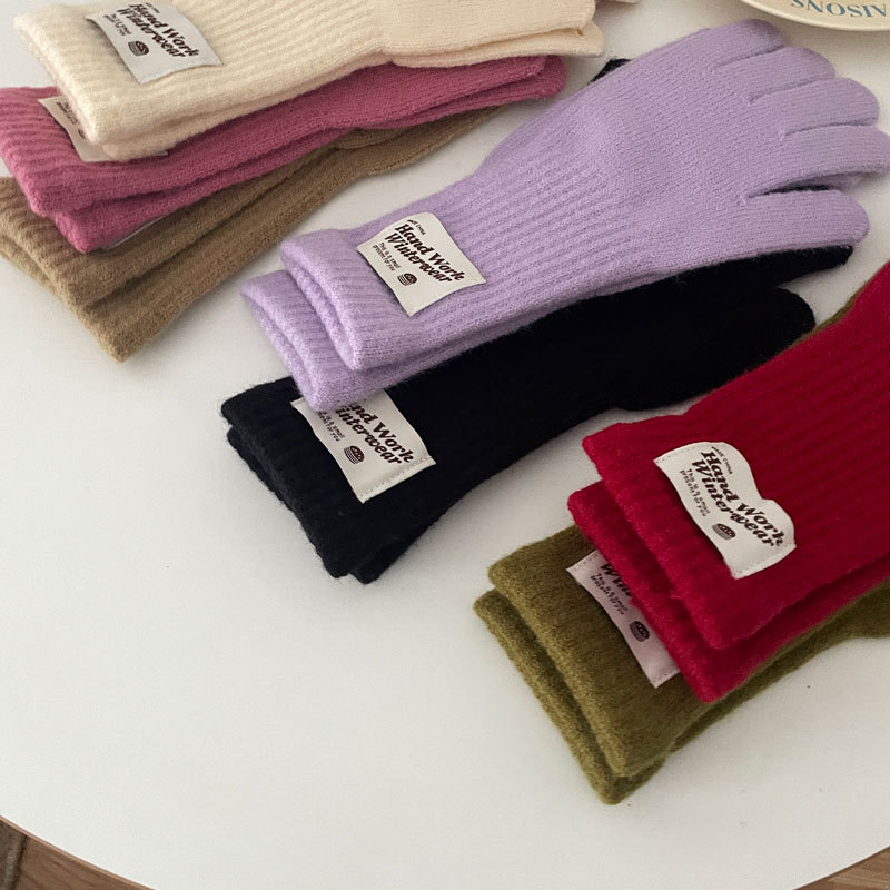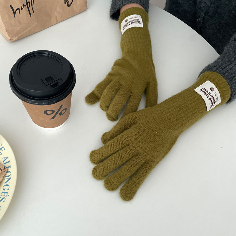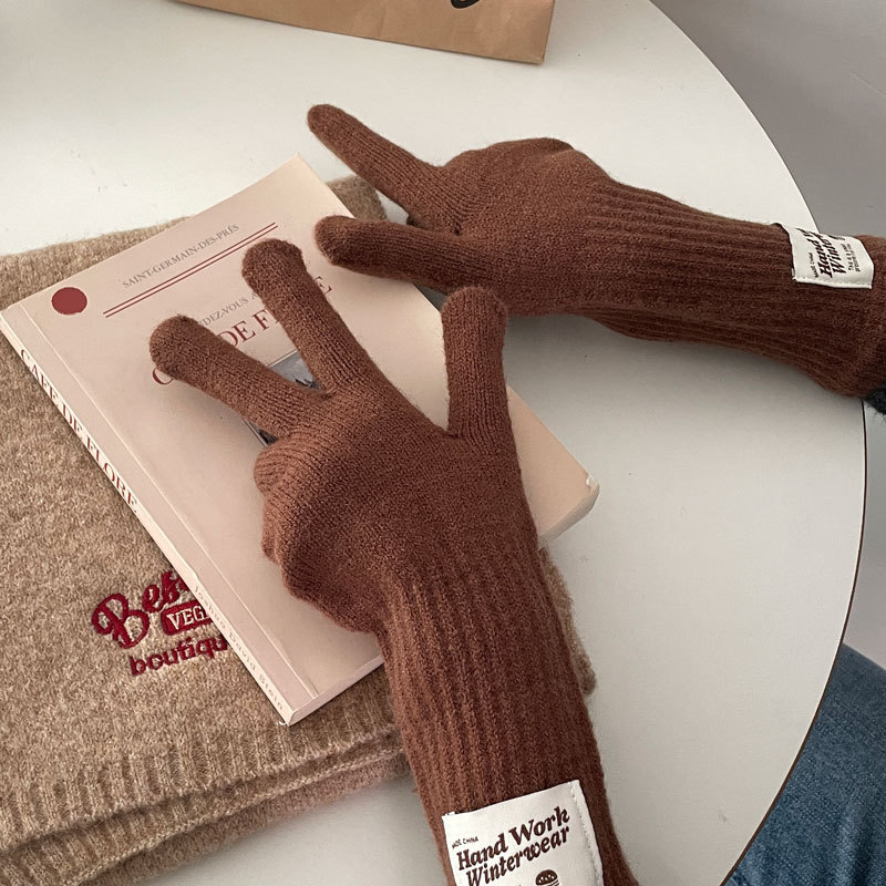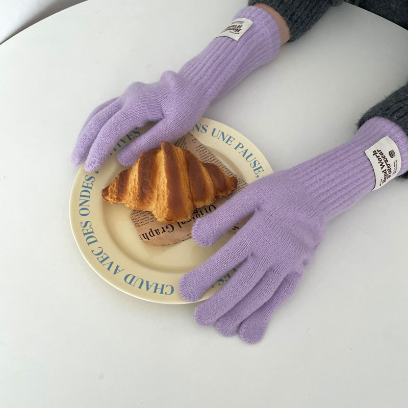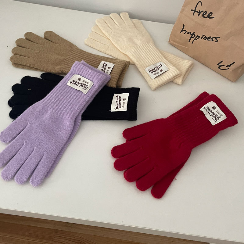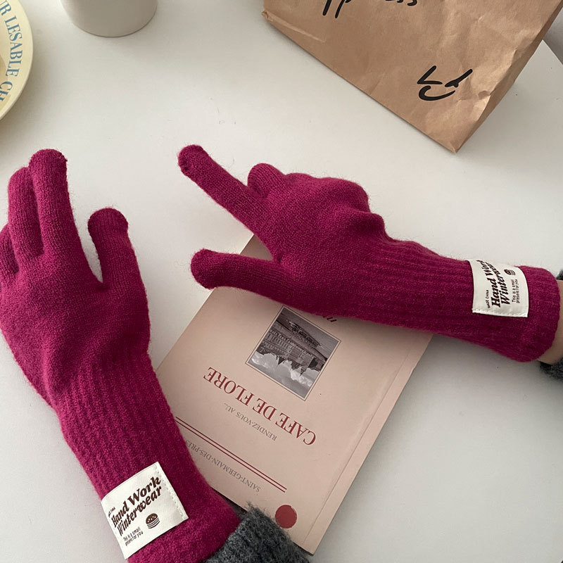 24 가을과 겨울 새로운 단색 다섯 손가락 손가락 장갑 여성의 터치 스크린 겨울 따뜻한 니트 장갑을 타고스토어 가기